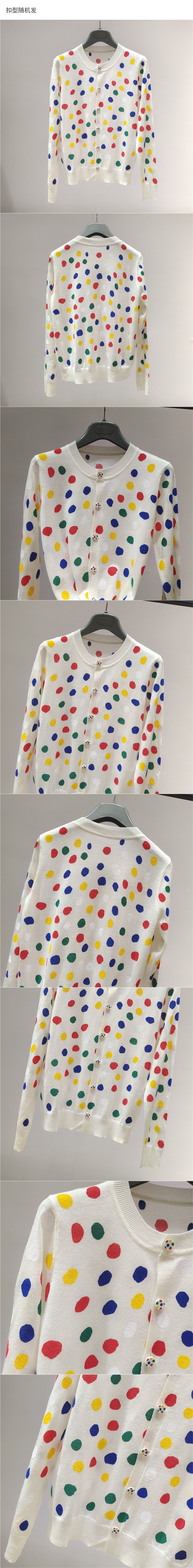 얇은 코트 2024 가을 새로운 긴 소매 라운드 넥 컬러 폴카 도트 프린트 울 스웨터 카디건 여성용 정사이즈스토어 가기