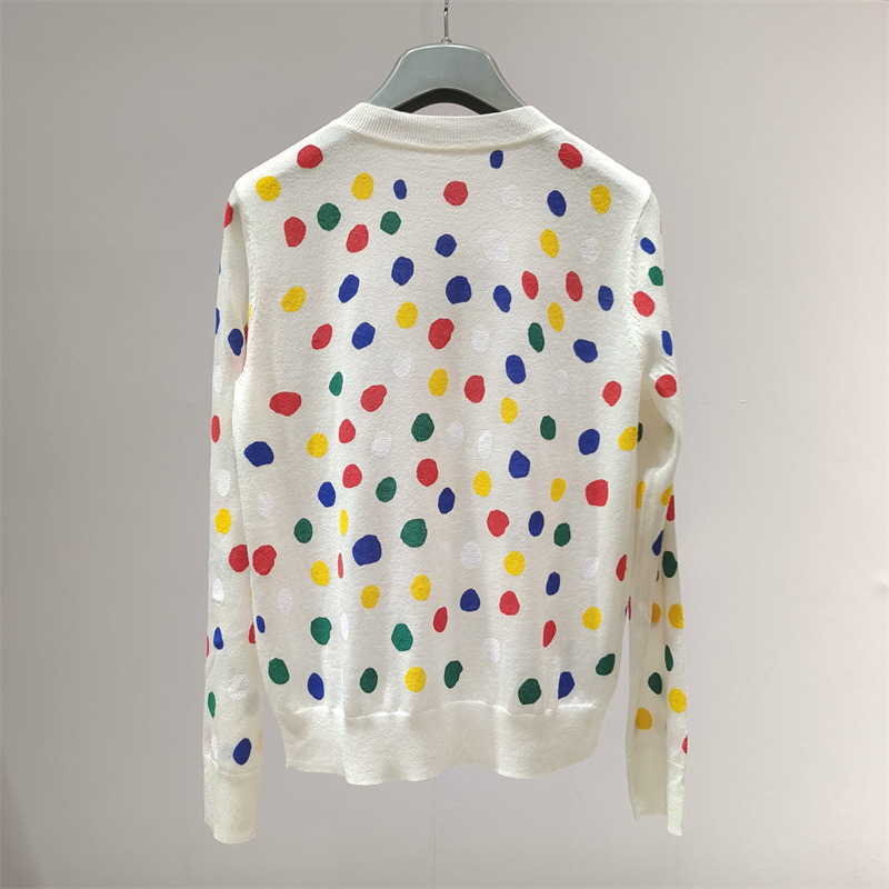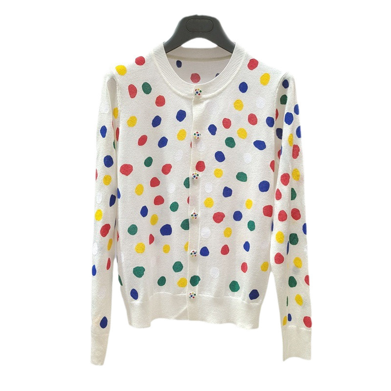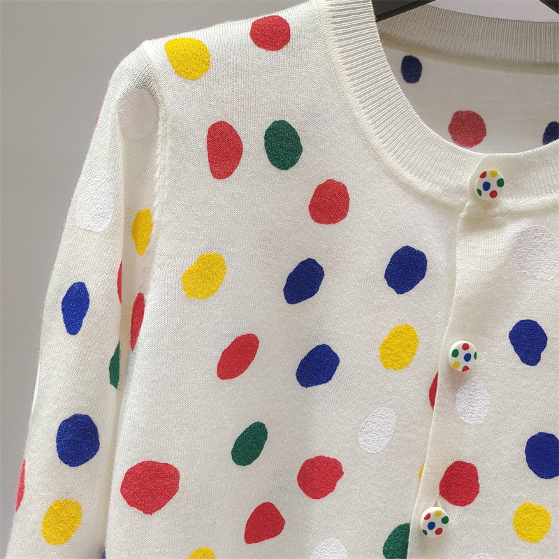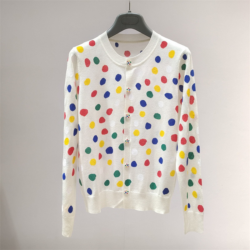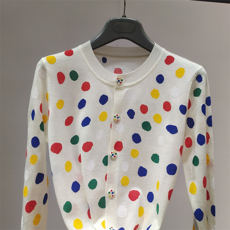 얇은 코트 2024 가을 새로운 긴 소매 라운드 넥 컬러 폴카 도트 프린트 울 스웨터 카디건 여성용 정사이즈