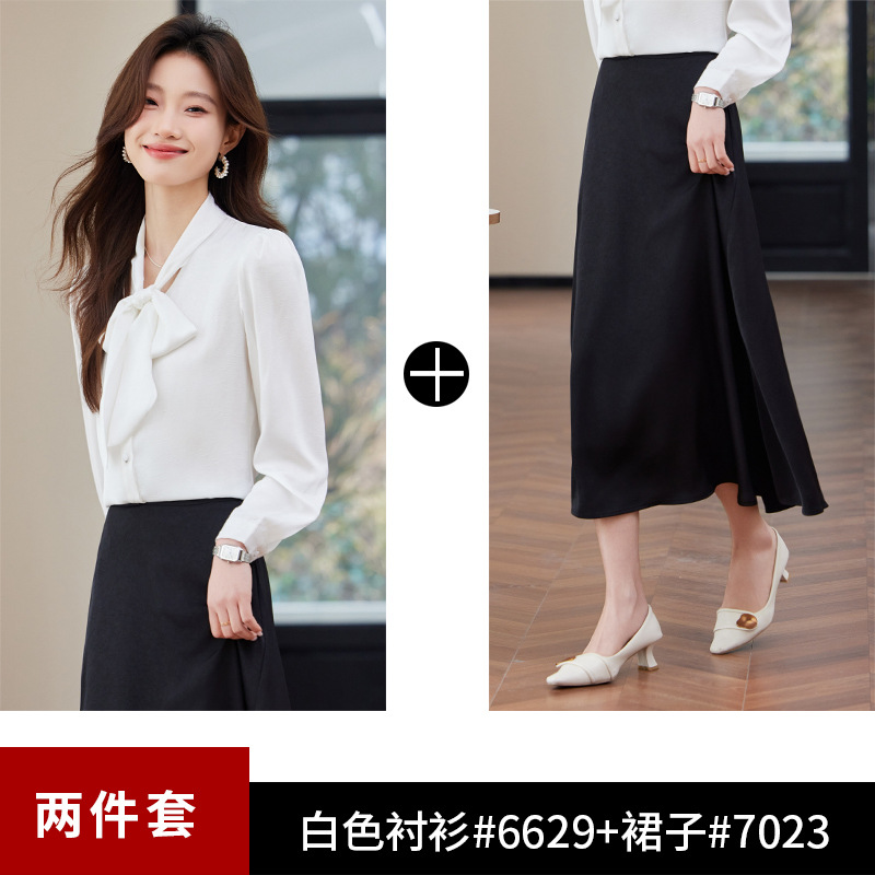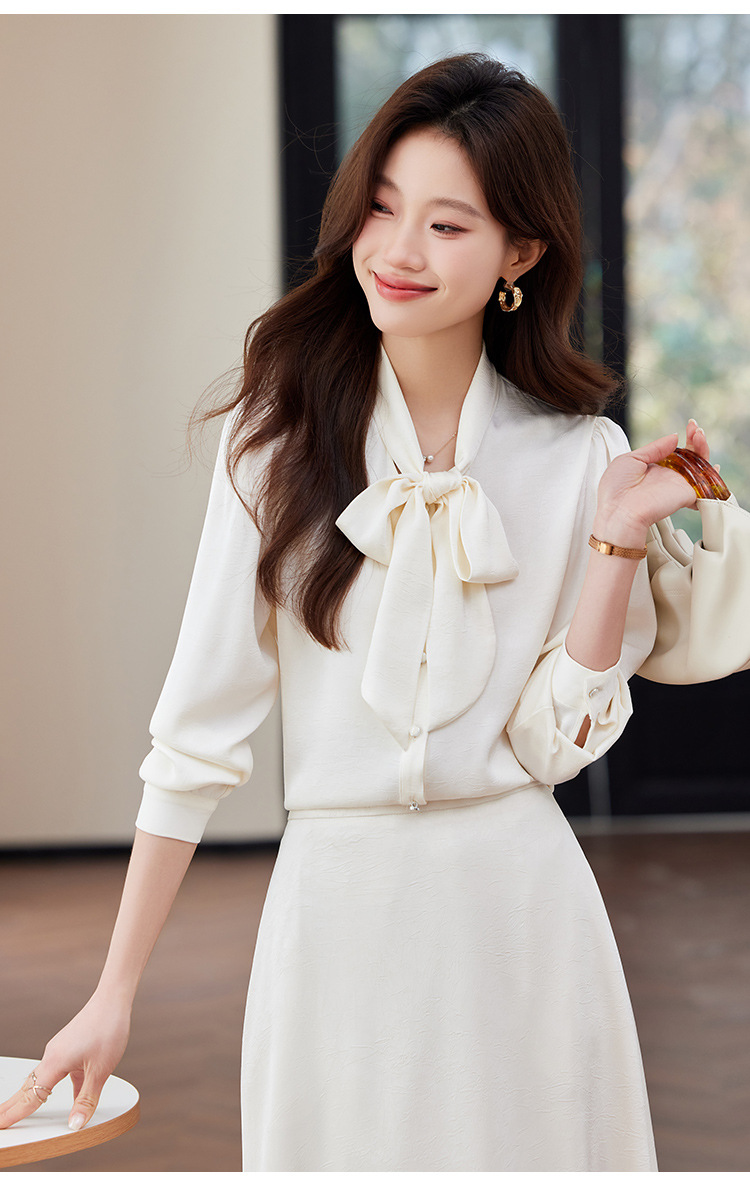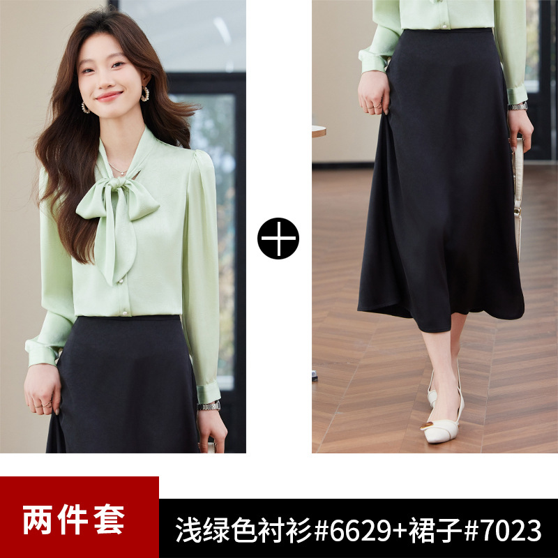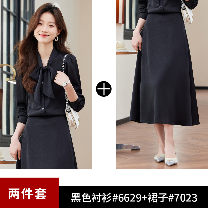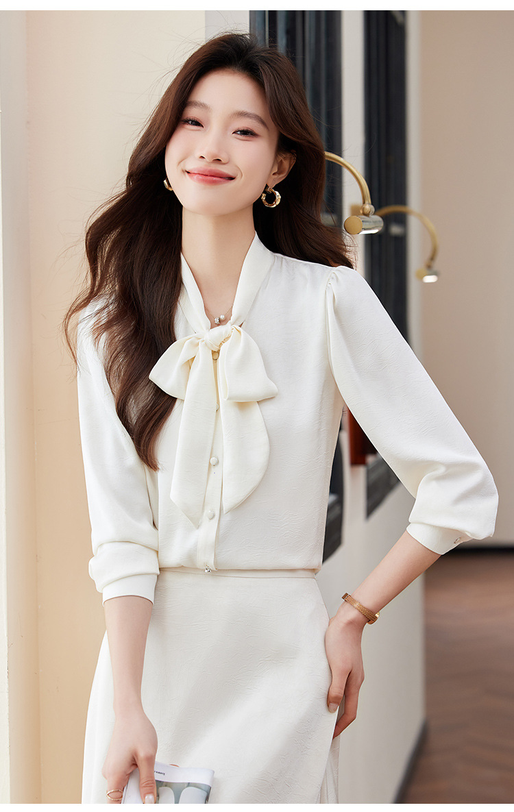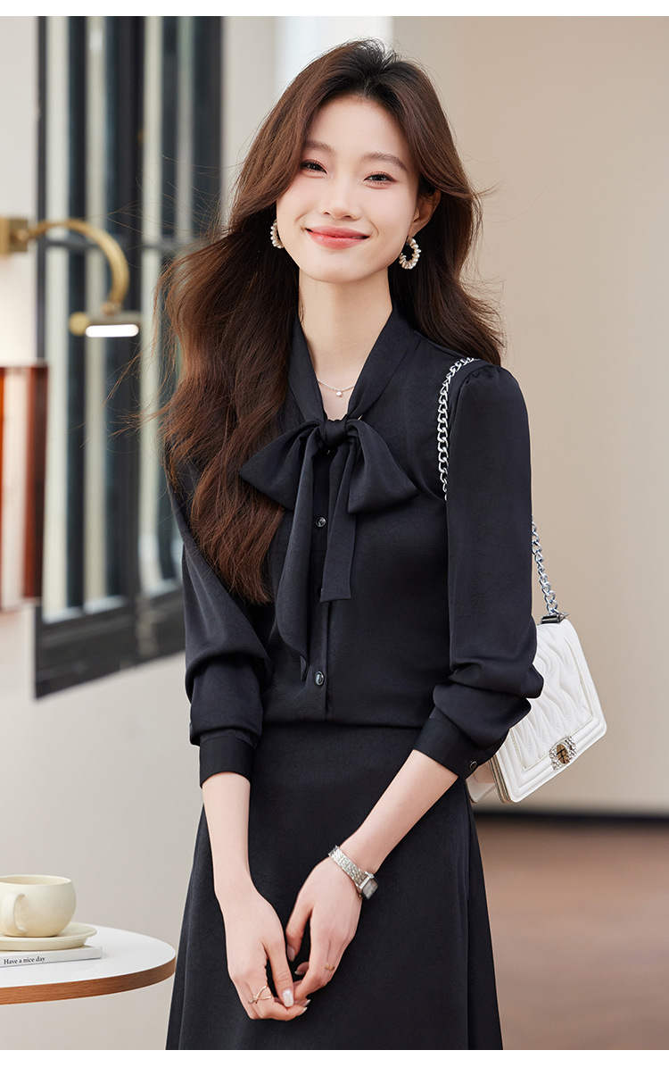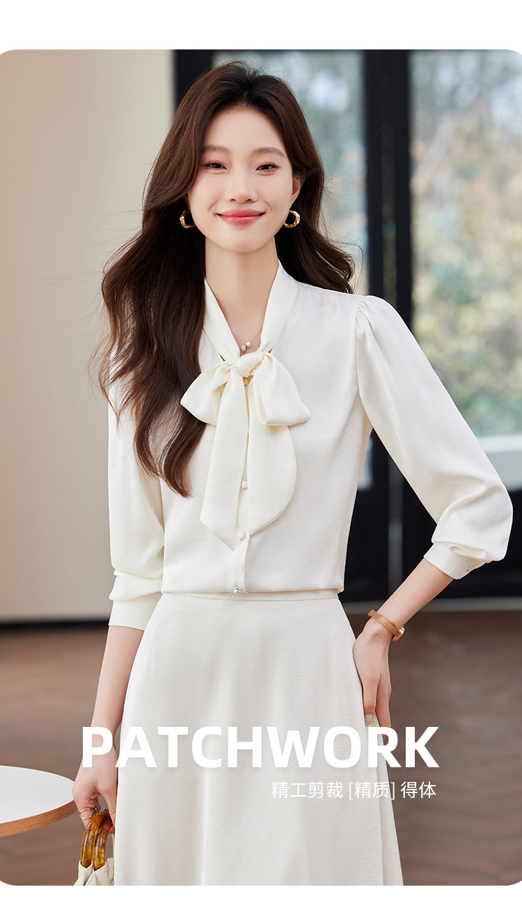 패션 활 칼라 쉬폰 피부 친화적 인 여성 셔츠 하이 엔드 기질 긴 소매 봄과 여름 셔츠 세트 디자인 감각