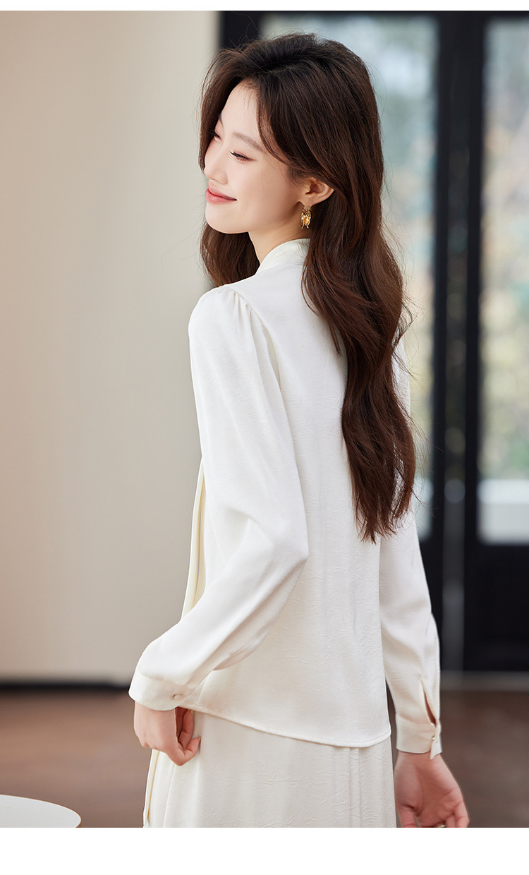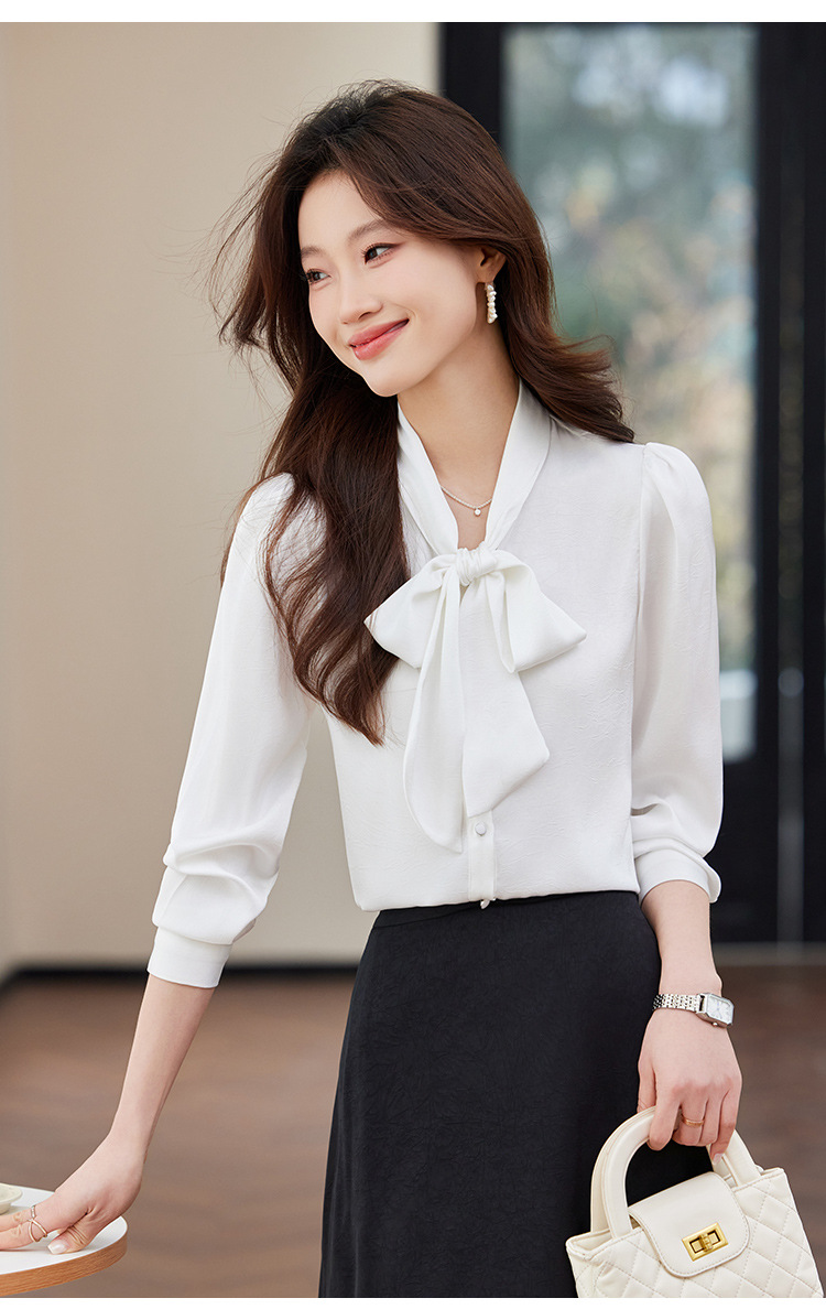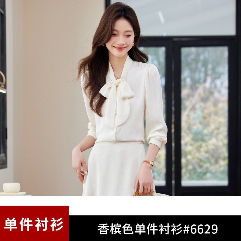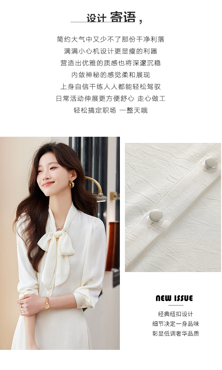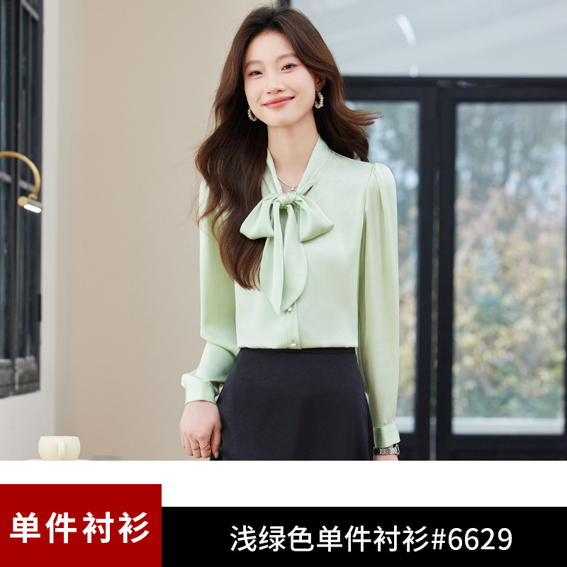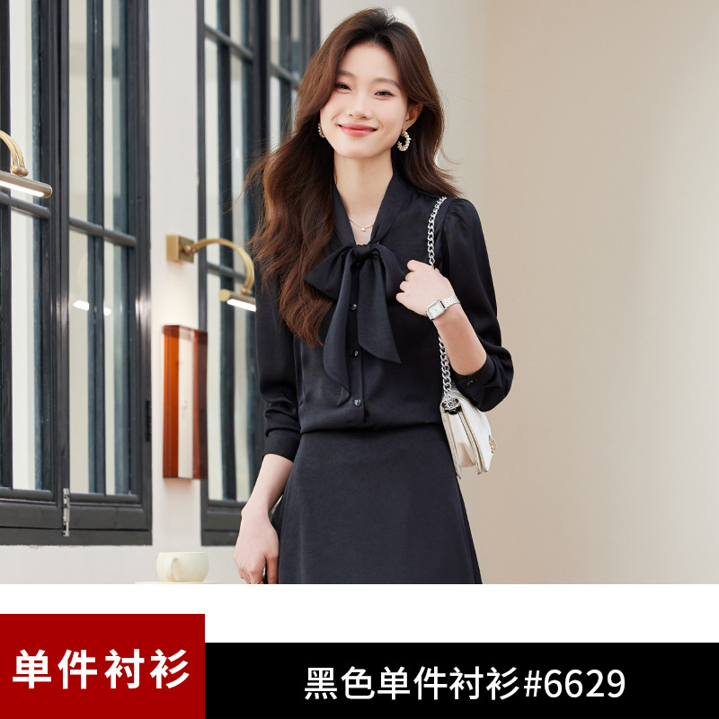 패션 활 칼라 쉬폰 피부 친화적 인 여성 셔츠 하이 엔드 기질 긴 소매 봄과 여름 셔츠 세트 디자인 감각스토어 가기