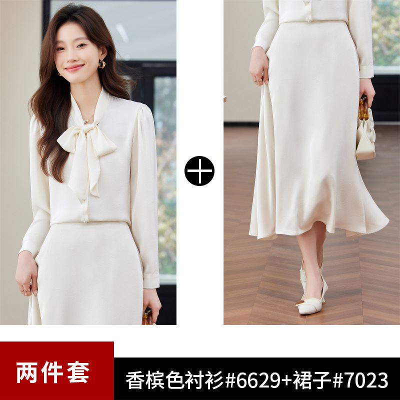 • 샴페인 셔츠 + 7025 화이트 스커트