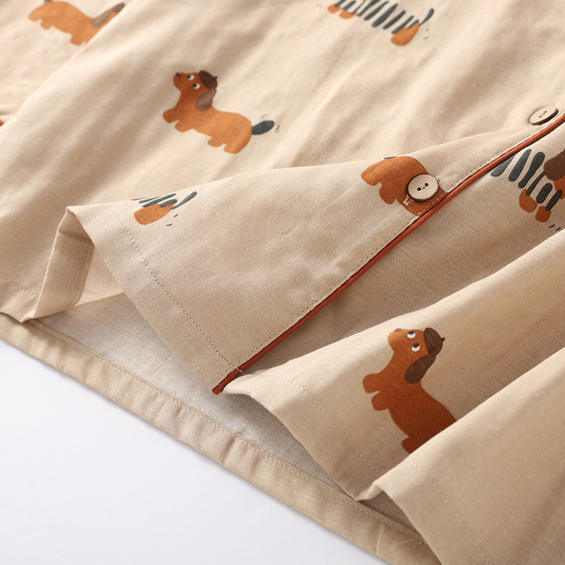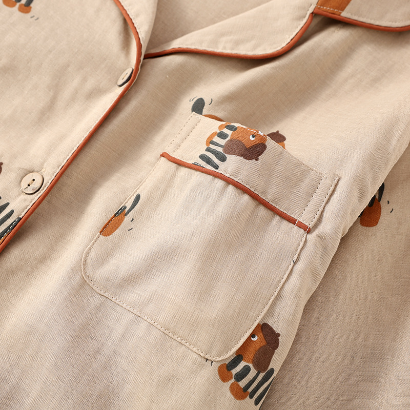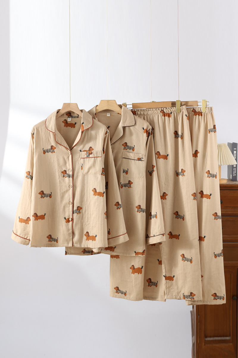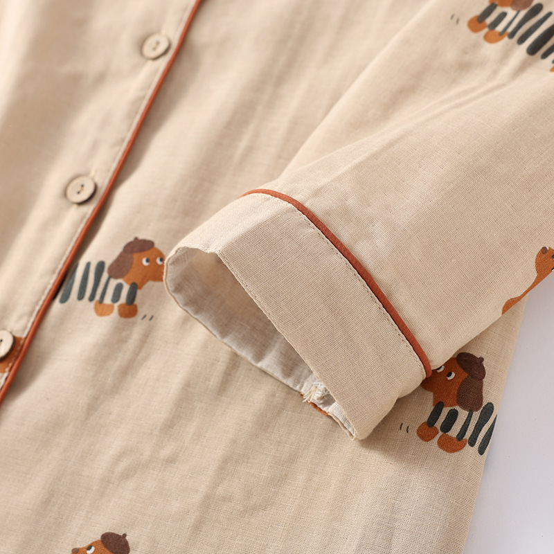 새로운 사계절 남녀 순면 원사 커플의 옷깃 카디건 파자마 긴 세트 편안한 간단한 가정 옷 세트