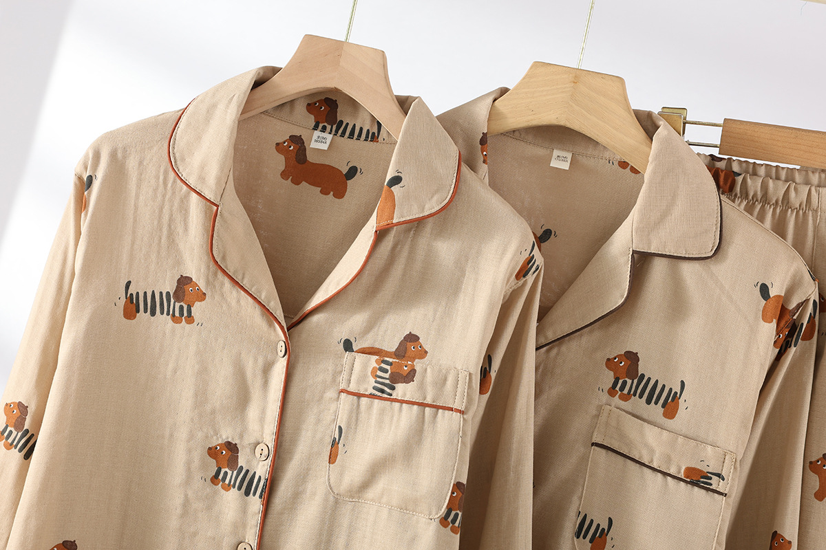 새로운 사계절 남녀 순면 원사 커플의 옷깃 카디건 파자마 긴 세트 편안한 간단한 가정 옷 세트스토어 가기
