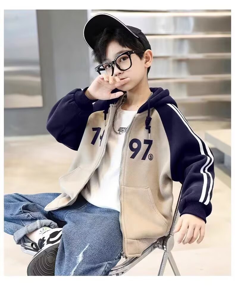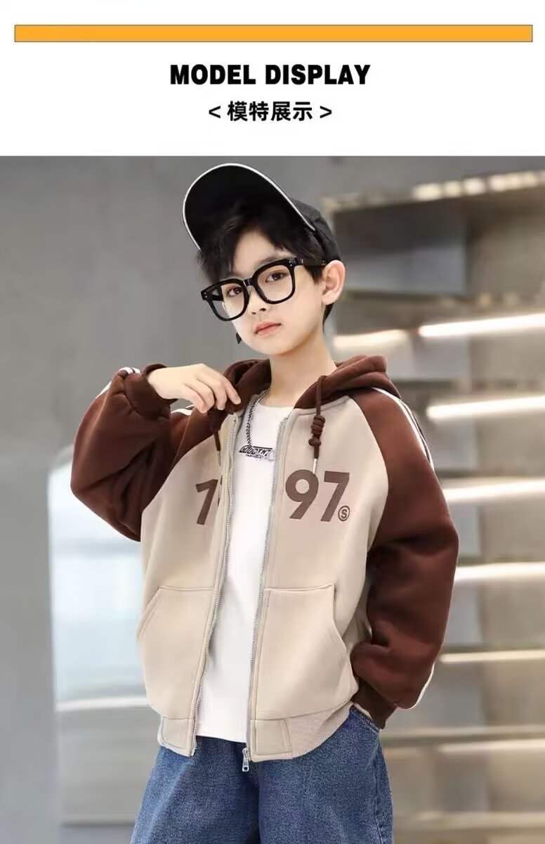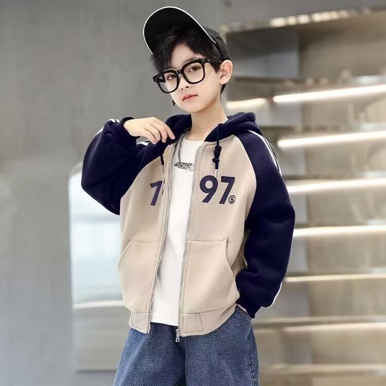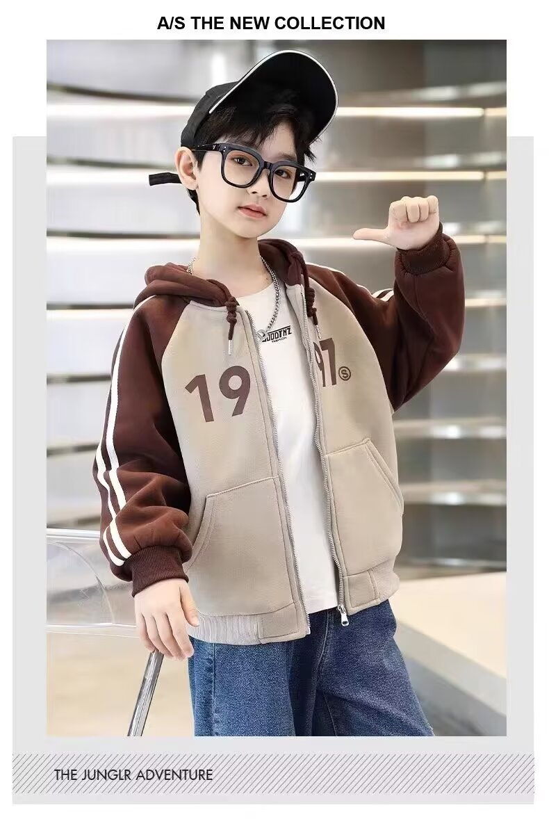 한국식 소년 '후드자켓 봄 · 가을 새 한국식 후드 디지털 톱 중학생 어린이 지퍼 옷스토어 가기