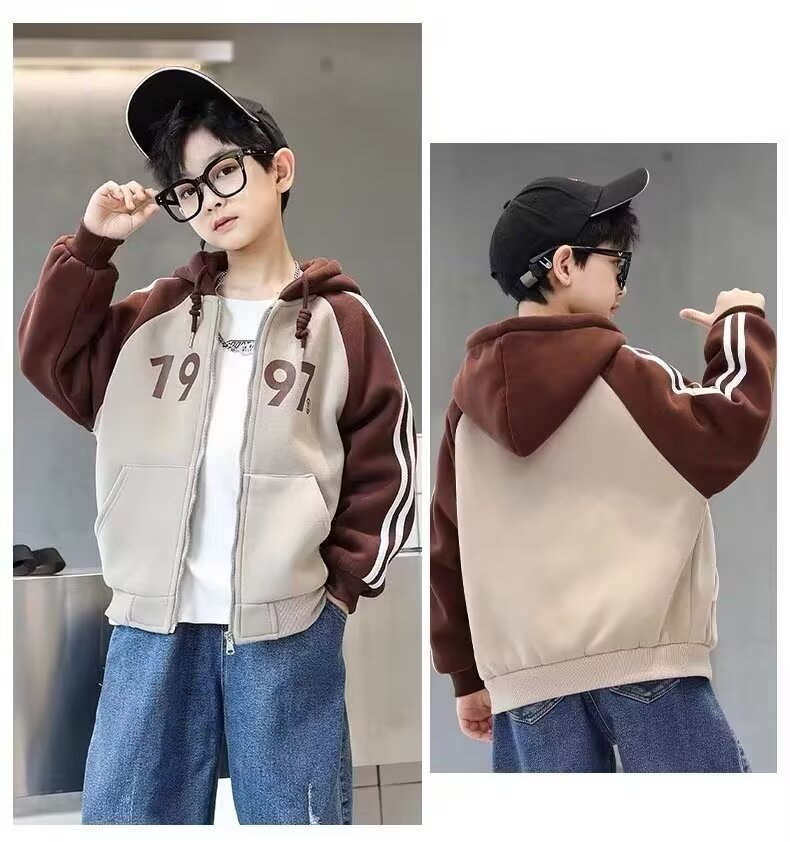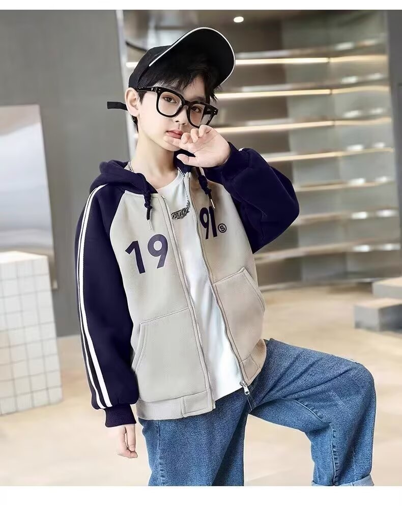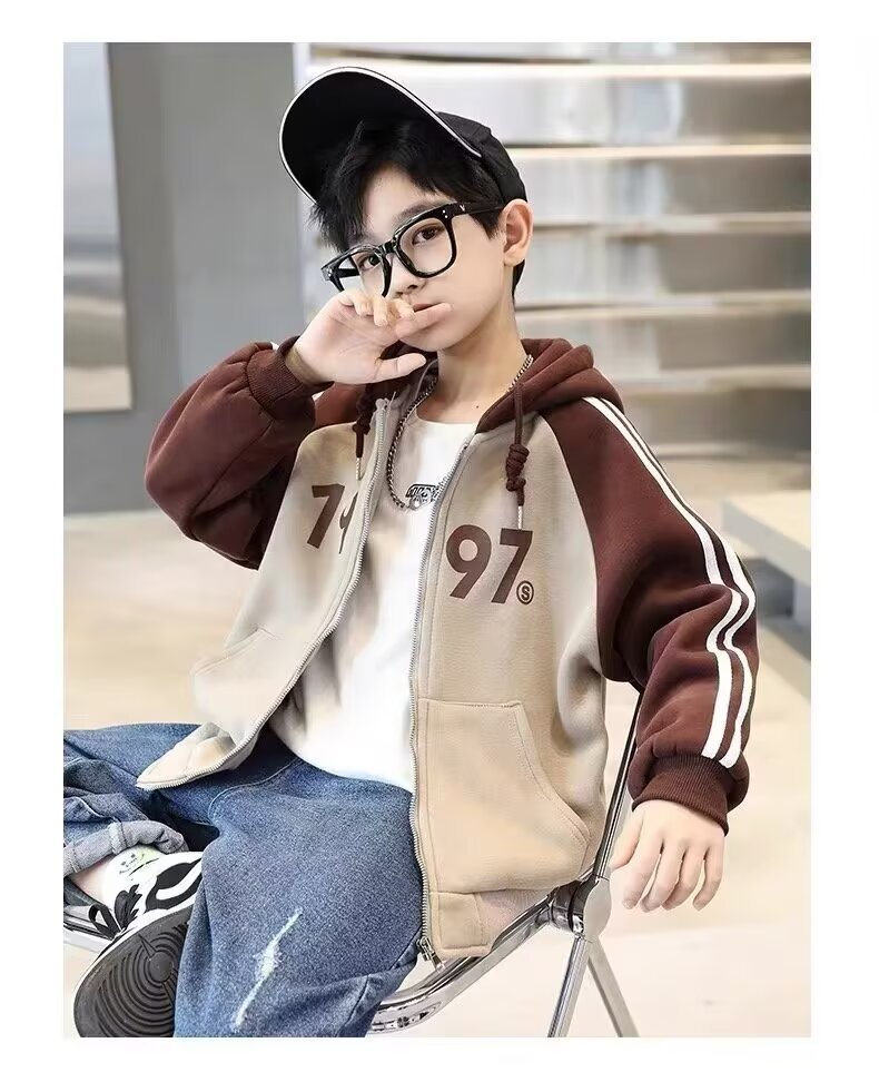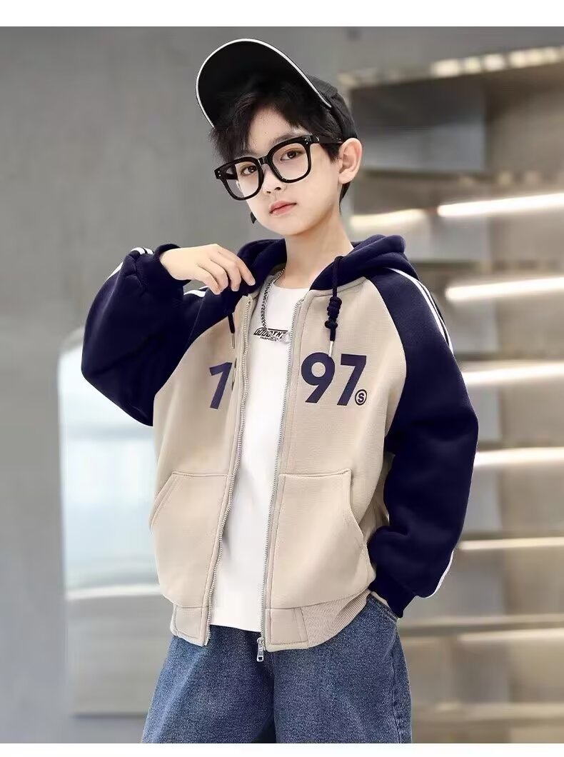 한국식 소년 '후드자켓 봄 · 가을 새 한국식 후드 디지털 톱 중학생 어린이 지퍼 옷스토어 가기