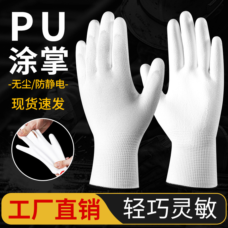 PU 손바닥 코팅 손가락 장갑 노동 보호 내마모성 나일론 미끄럼 방지 통기성 얇은 접착제 작업 정전기 방지 작업스토어 가기