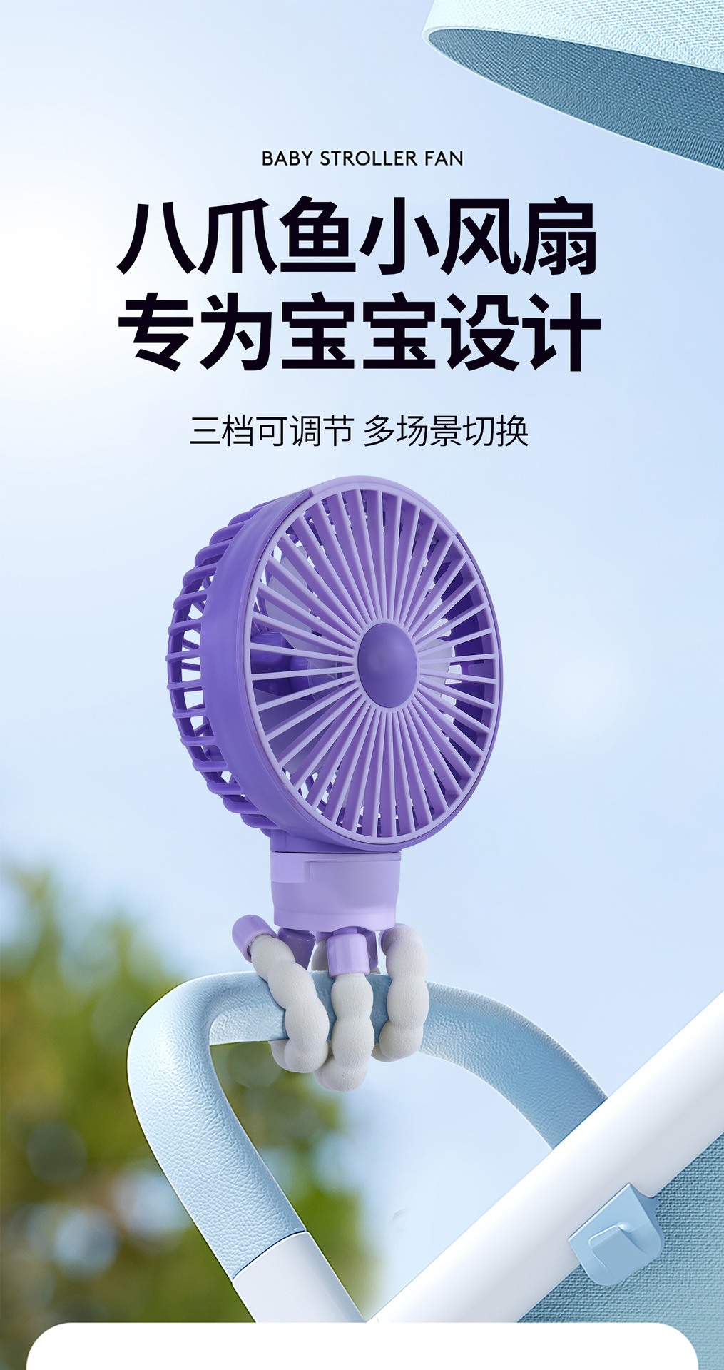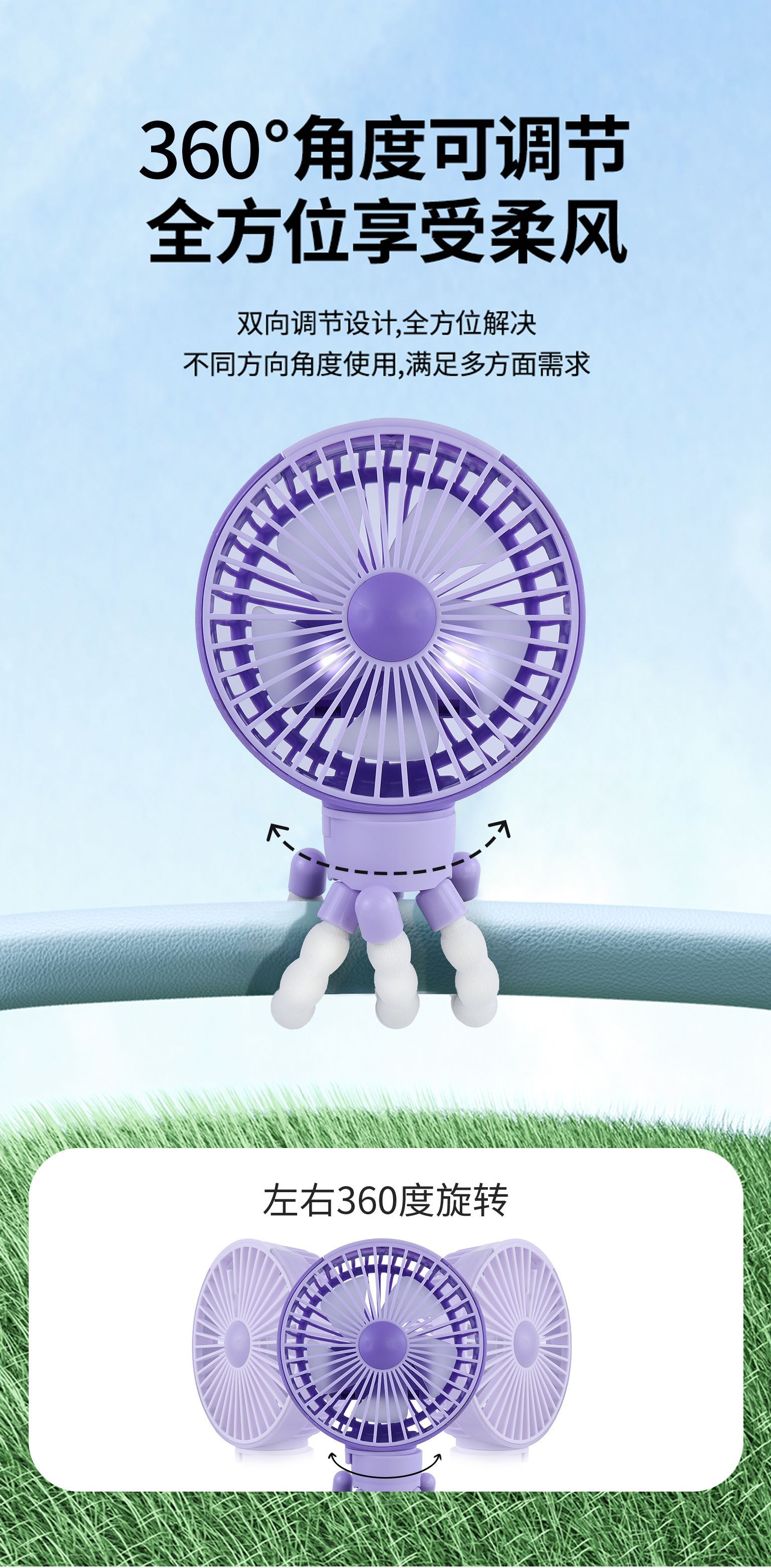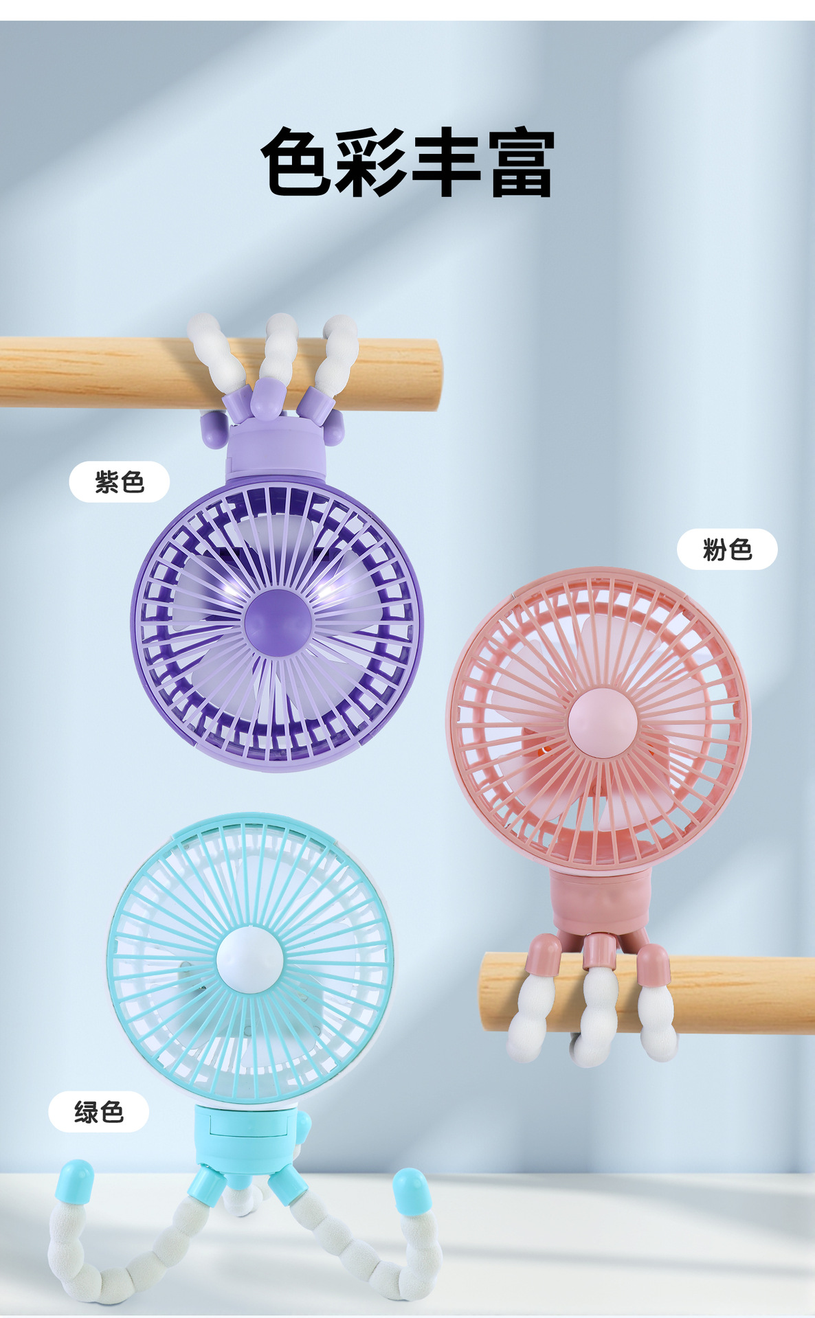 2025 아마존 폭발 FT 문어 팬 핸드 헬드 USB 충전 팬 유모차 데스크탑 팬 공장스토어 가기