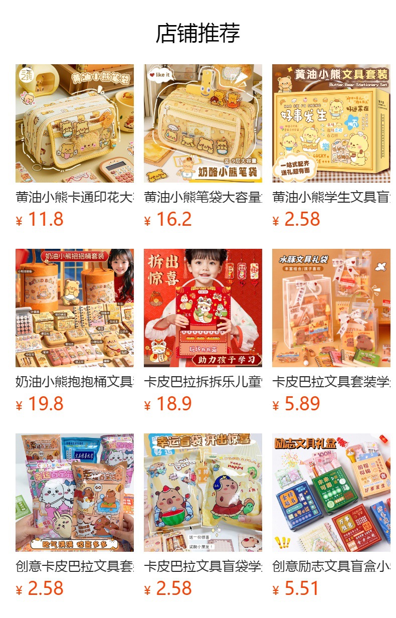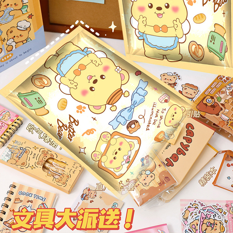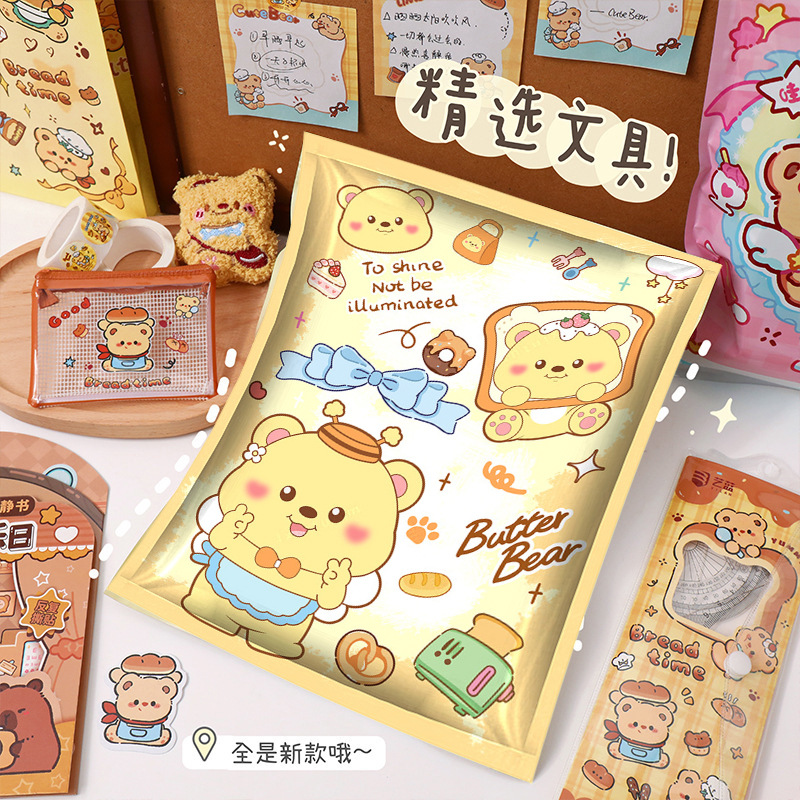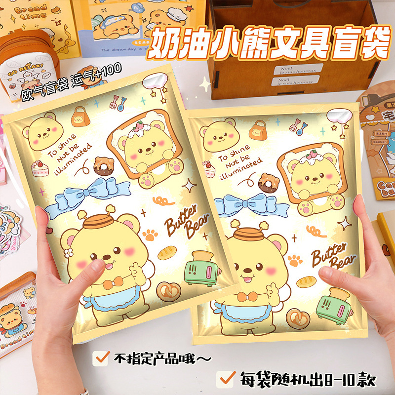 这款黄油小熊盲袋内含部分黄油小熊产品,还有其他文具搭配。若介意非全系列,下单请谨慎哦。