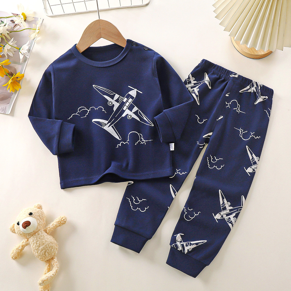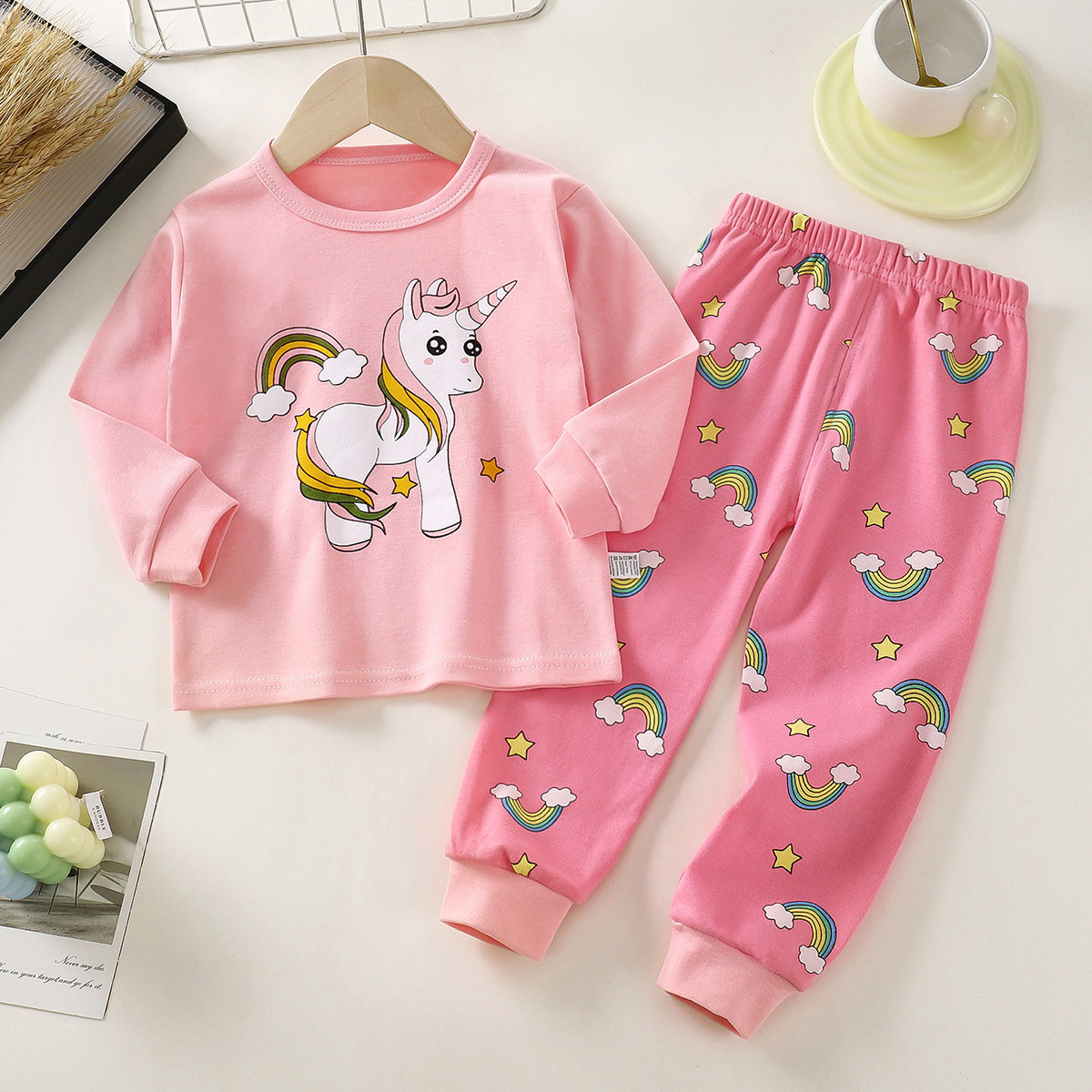 2025 새로운 어린이 속옷 세트 순수 코튼 소년과 소녀 잠옷 가정 의류 아기 가을 옷 가을 바지 아동 의류 도매스토어 가기