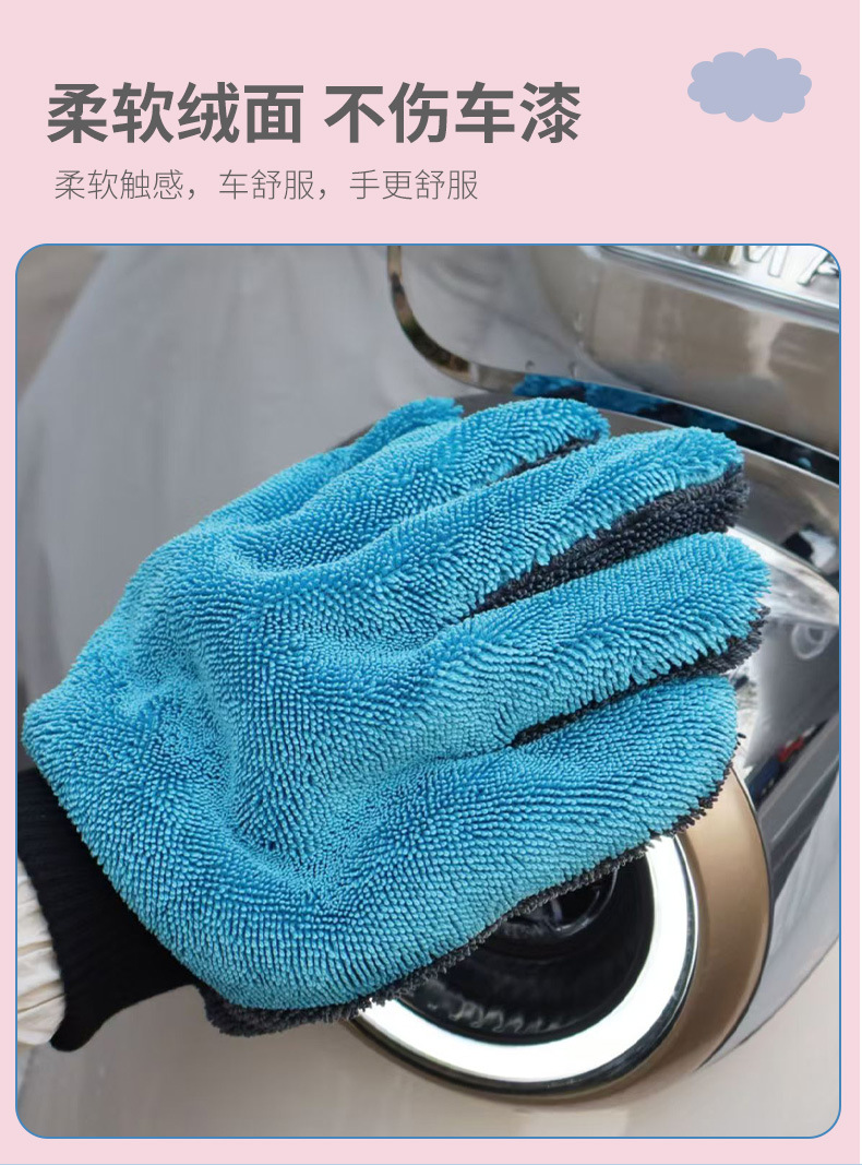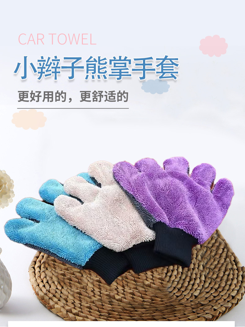 자동차를 거품으로 닦을 수 있는 땋은 곰발바닥 장갑, 5손가락 수건, 페인트를 손상시키지 않는 양면 플러시 천, 두꺼운 세차 장갑