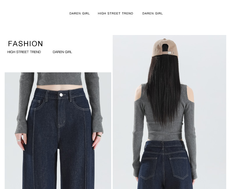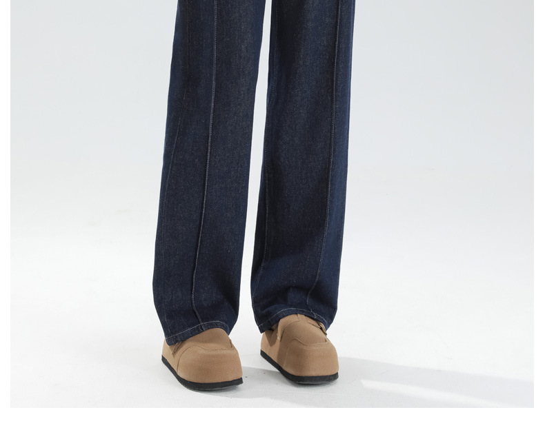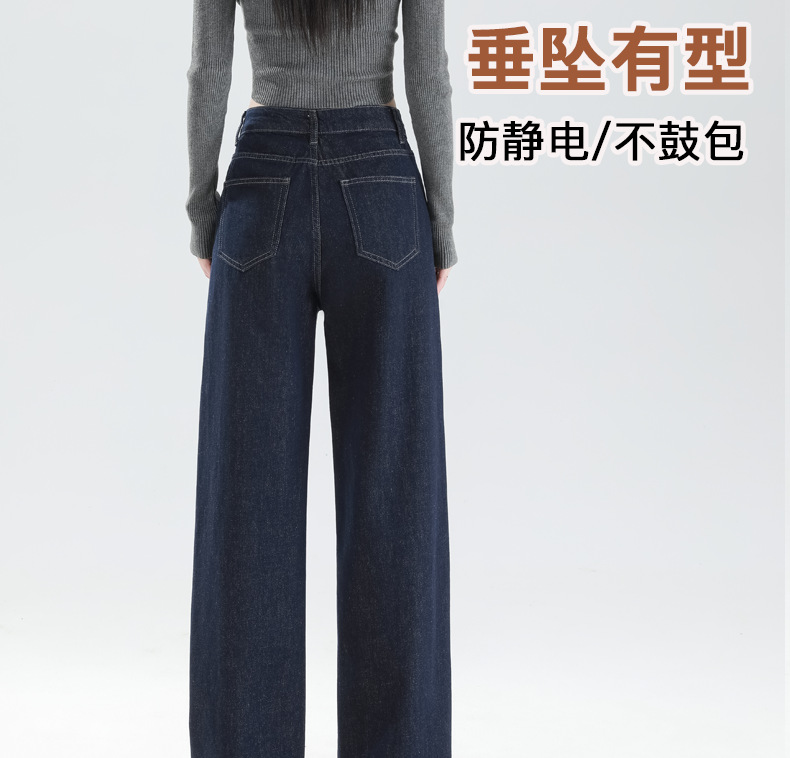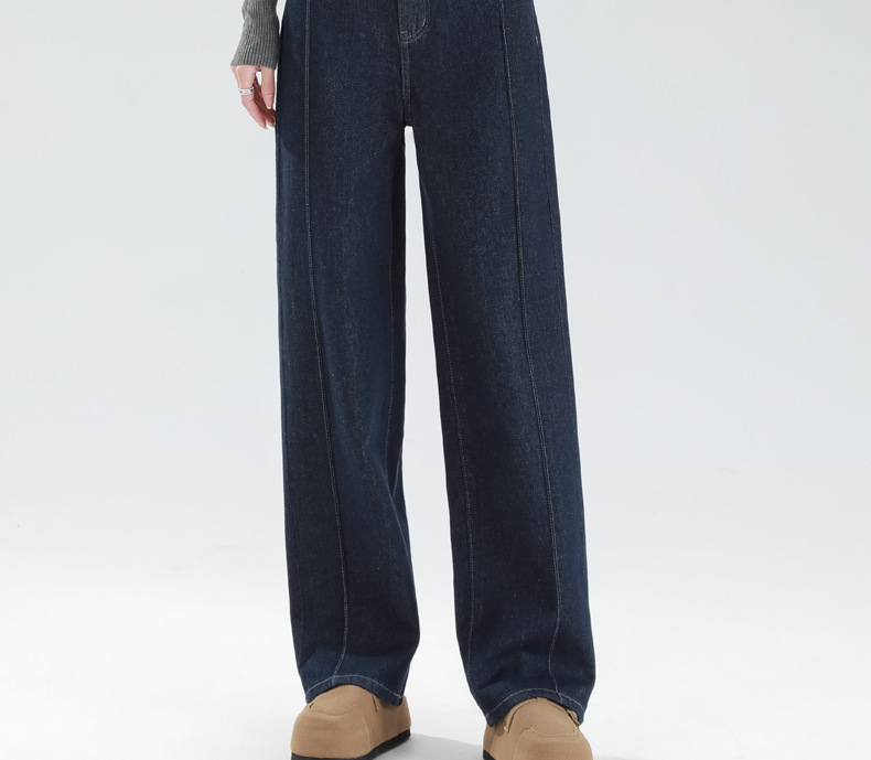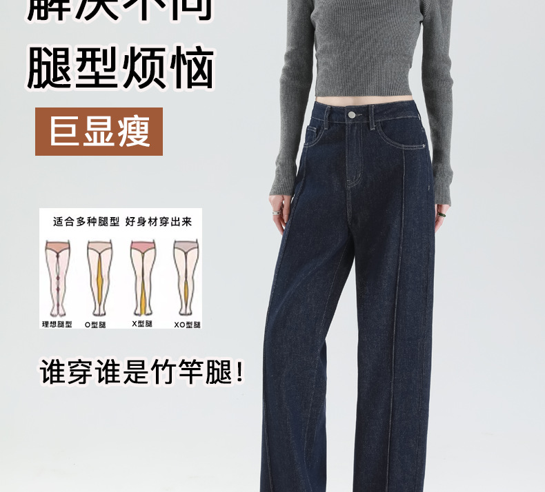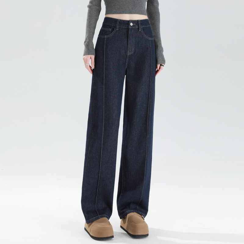 정주 여성 바지 청바지 봄 새로운 다크 블루 복고풍 하이 허리 느슨한 슬림 좁은 스트레이트 팬츠 18116