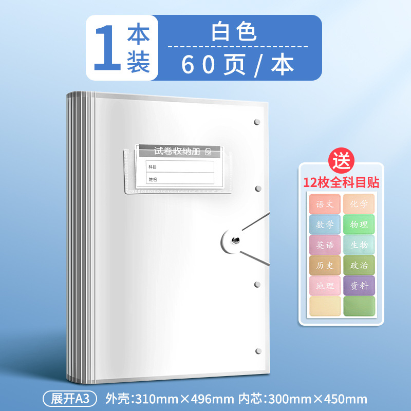 트루컬러 A3 시험지 보관 가방, 시험지 홀더, 파일 폴더, 시험지 정리함, 초등학생을 위한 투명 삽입 다층 보관함스토어 가기