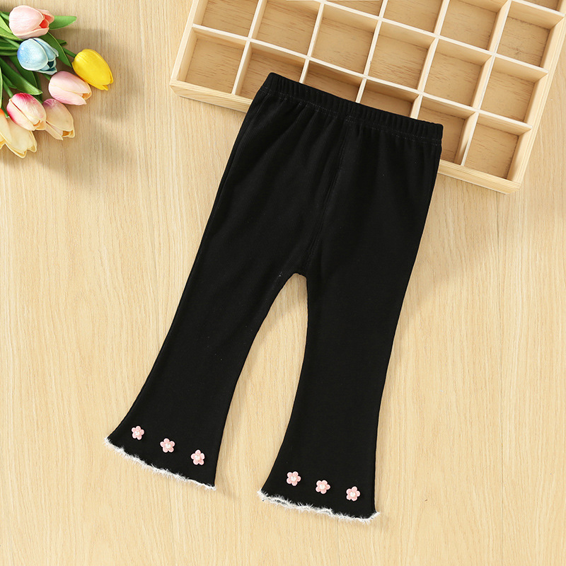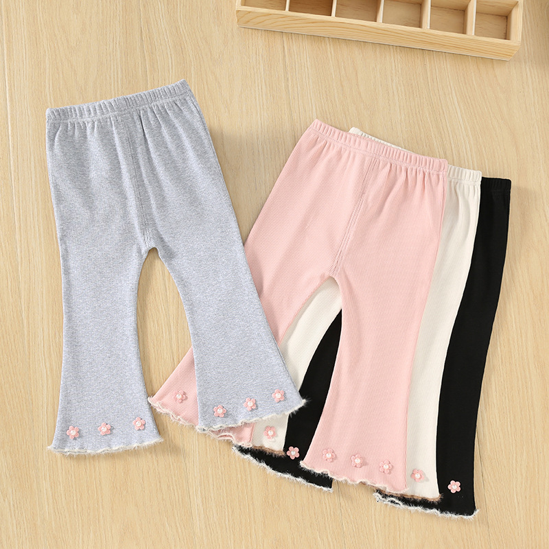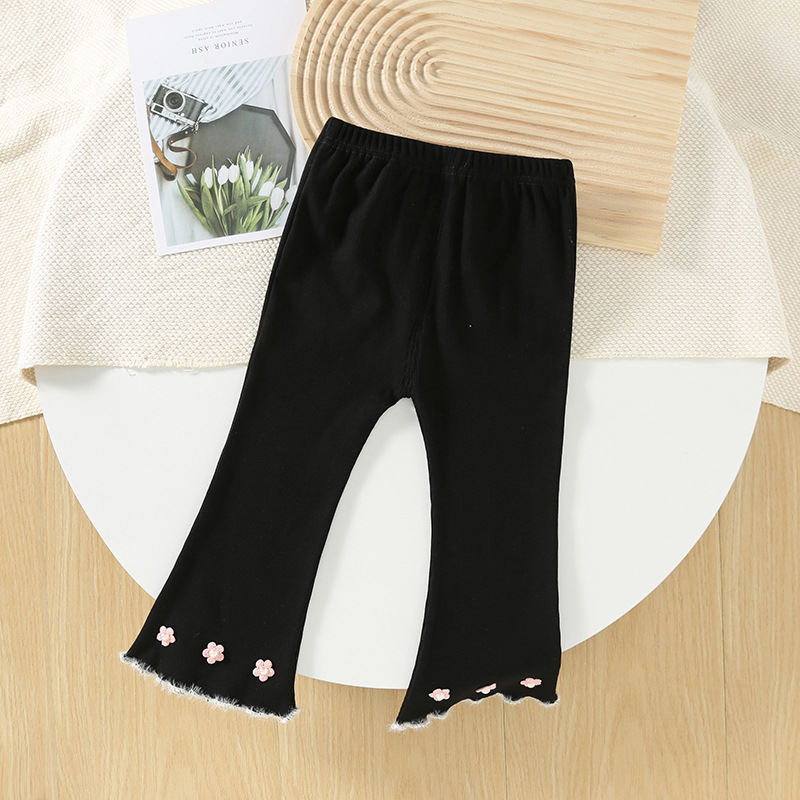 여자 캐주얼 바지 가을 2025 새로운 도착 아기 소녀 서양식 어린이 독특한 한국 스타일 레깅스 인터넷 축하 꽃 바지스토어 가기