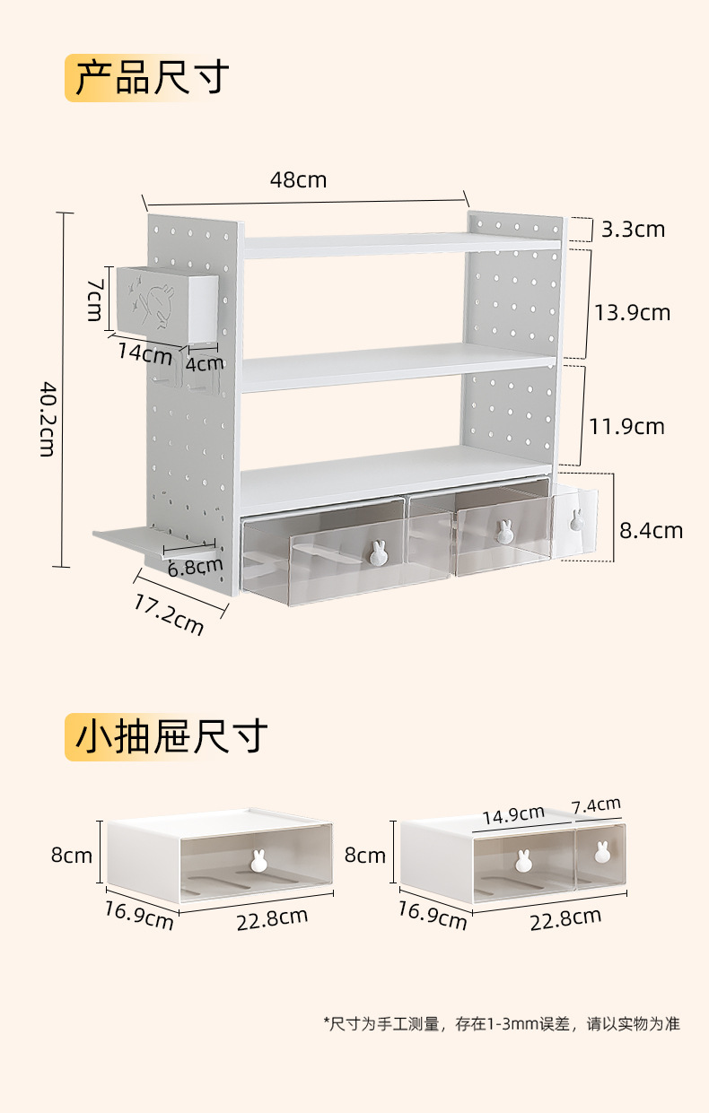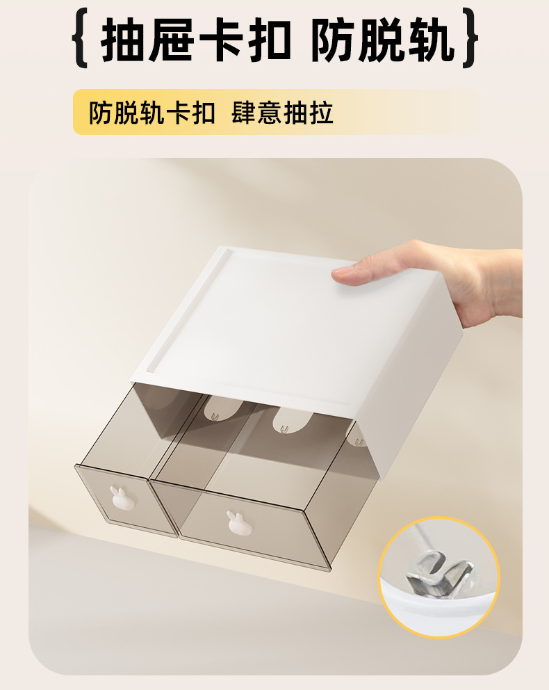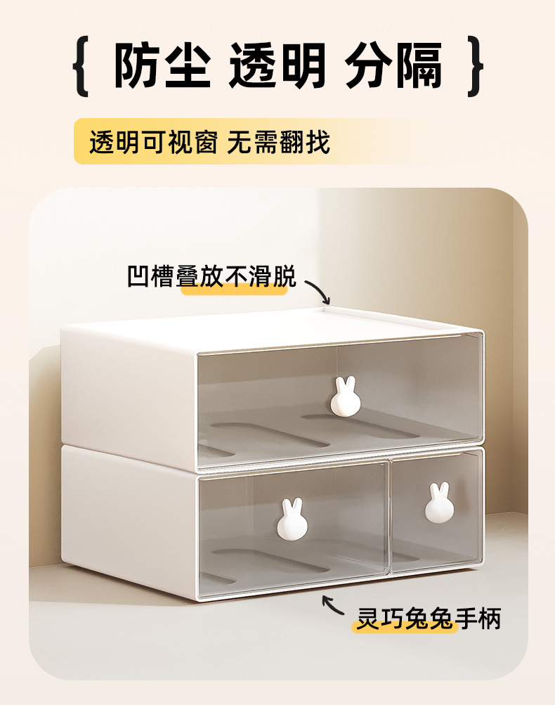 • 흰색 프레임 고투명 토끼-이중 서랍