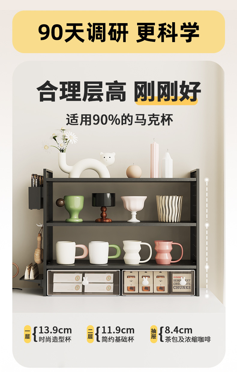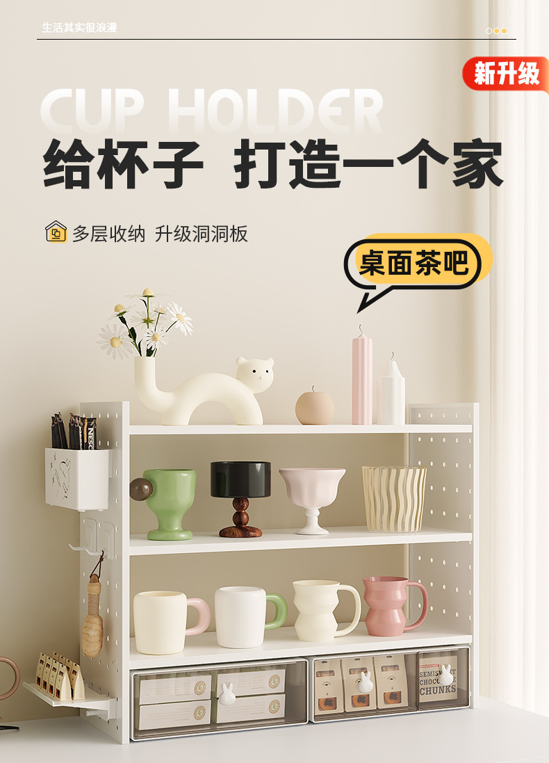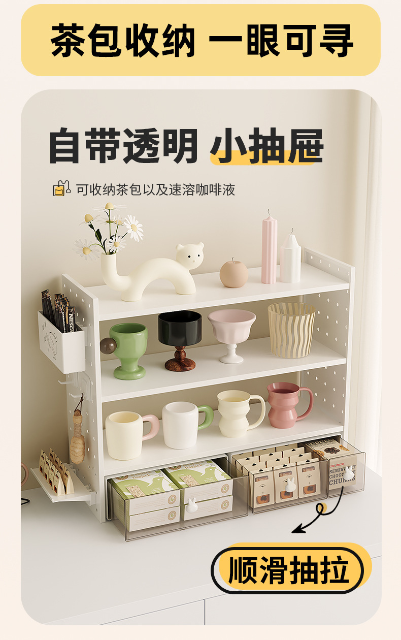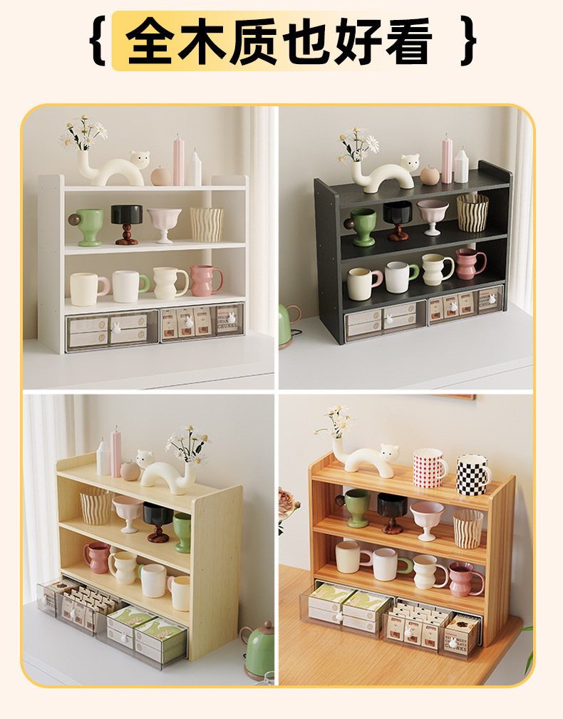 가정용 데스크탑 컵 홀더 머그컵 저장 랙 테이블 차 세트 다층 서랍 대용량 저장 랙스토어 가기