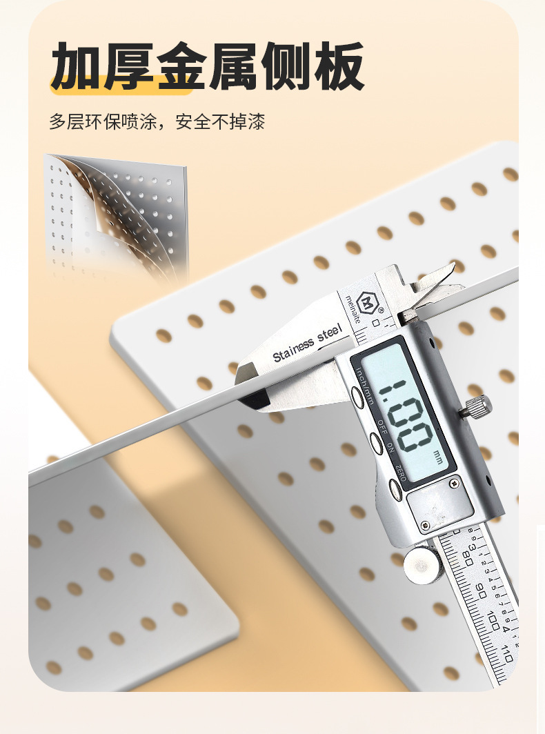 • 화이트 - 탄소강 측면 패널 + 목재 수평 패널 [무료 천공 보드 액세서리]