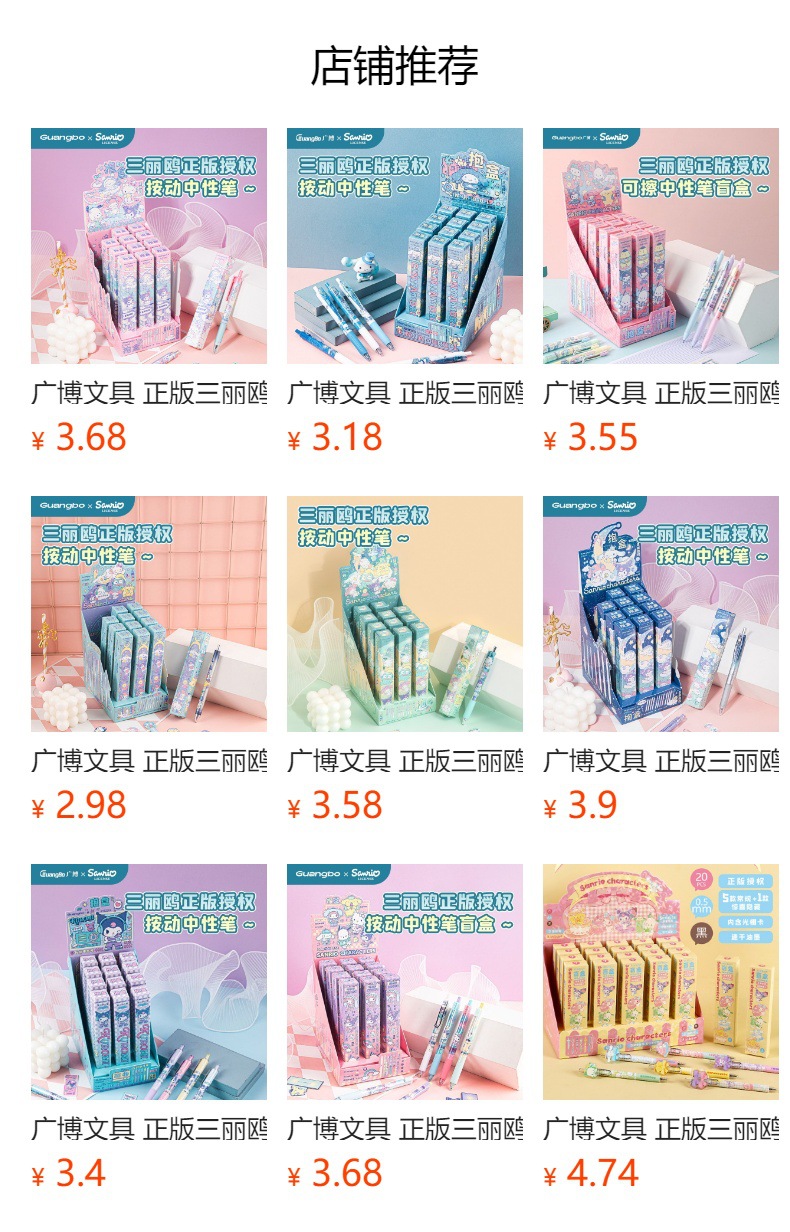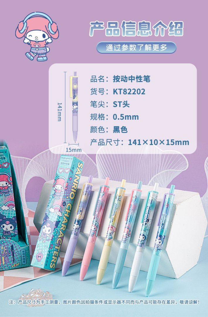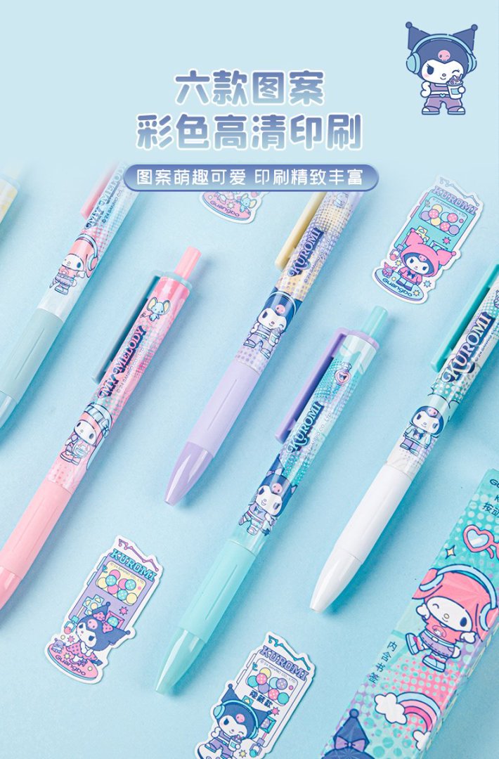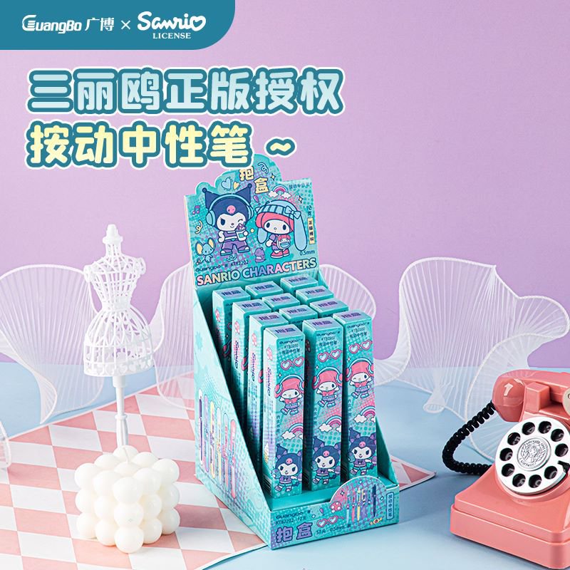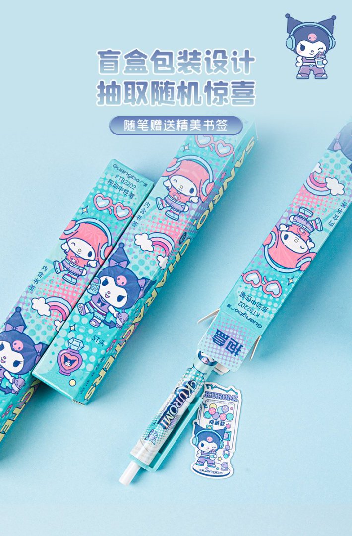 Guangbo 문구 진짜 Sanrio Kulomi 프레스 젤 펜 블라인드 박스 펜 학생 귀여운 소프트 그립 브러시 펜스토어 가기