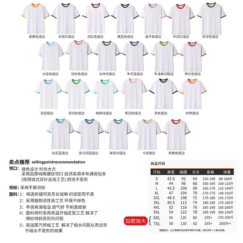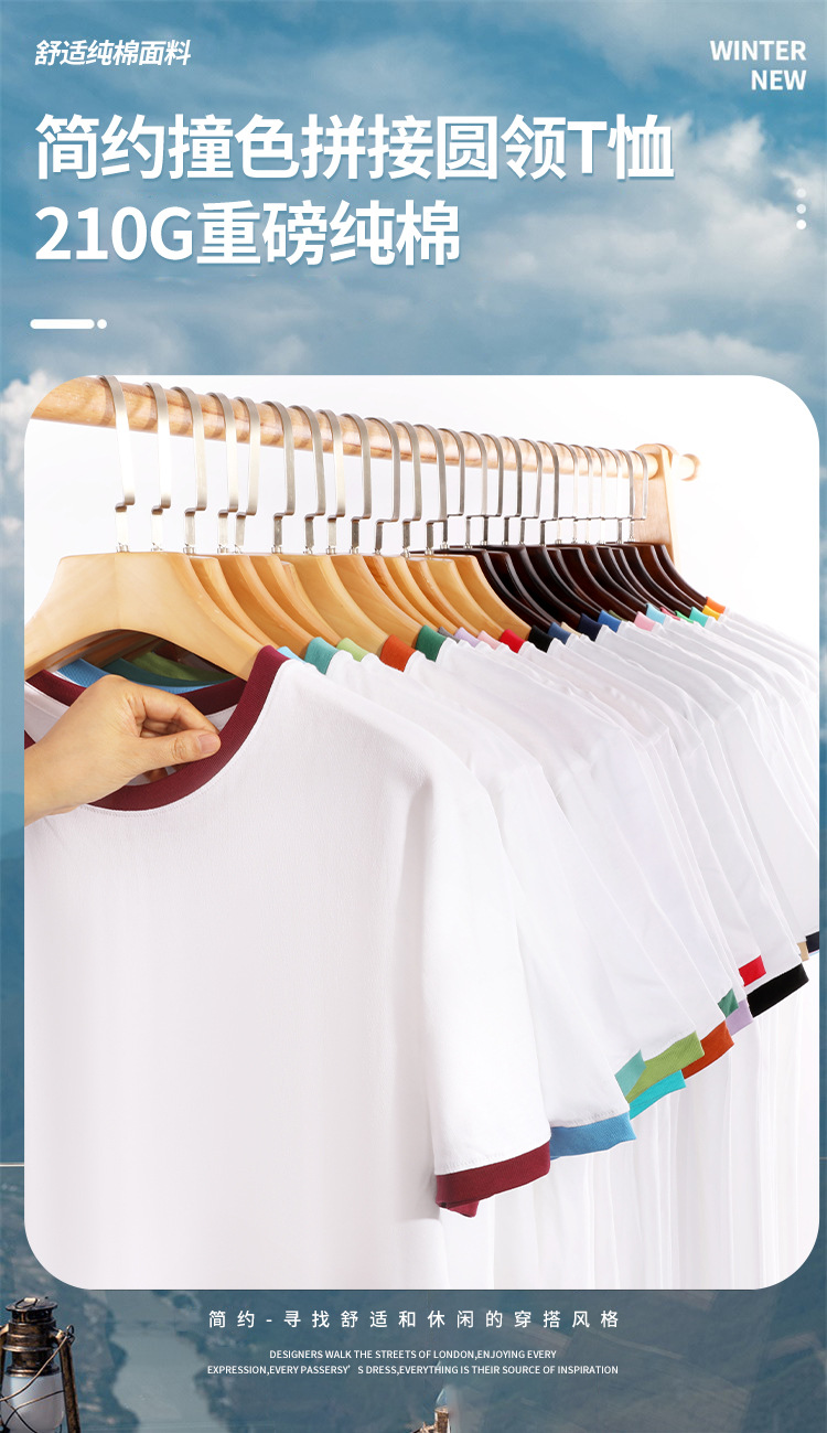 210g 헤비급 순수 코튼 반팔 티셔츠 대비 색상 스플 라이스 티셔츠 탑 라운드 넥 남성 그룹 작업복 맞춤형스토어 가기