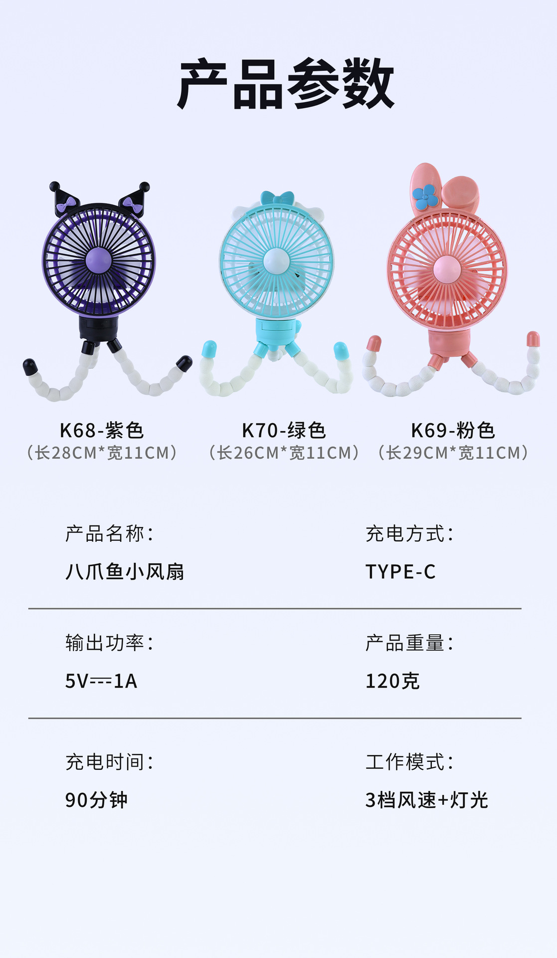 국경 간 데스크탑 휴대용 휴대 전화 홀더 문어 작은 팬 충전 라이트 문어 전기 팬 크립 팬스토어 가기