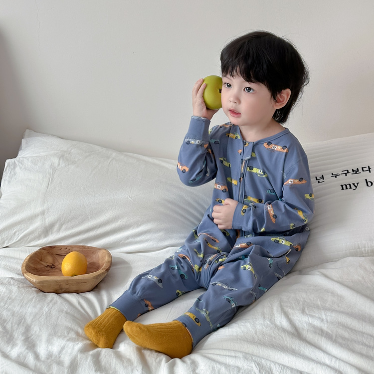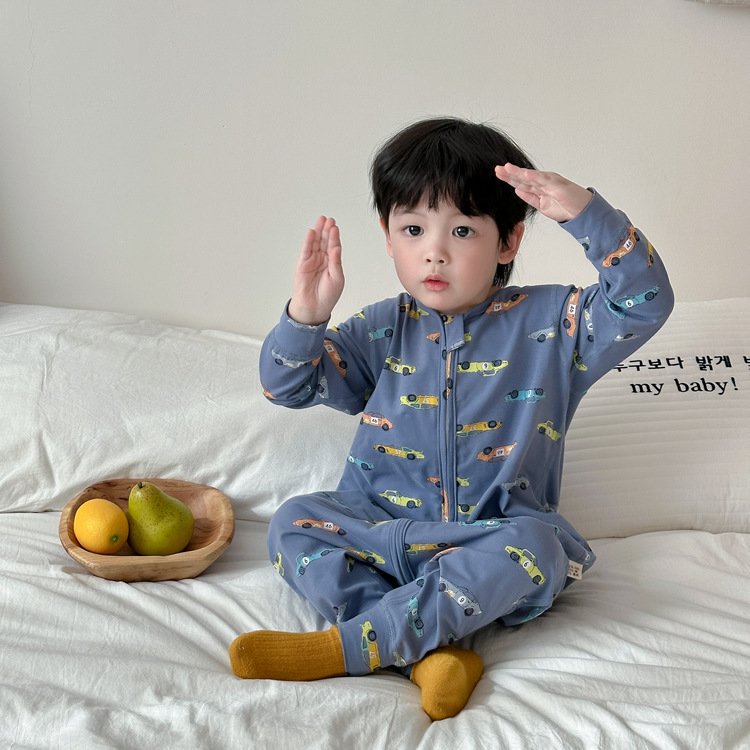 봄과 가을 어린이 Siaman Pajamas 뼈없는 소년과 소녀 아기 잠자는 가방 면 다리 분할 아기 킥 방지 퀼트 올 시즌스토어 가기