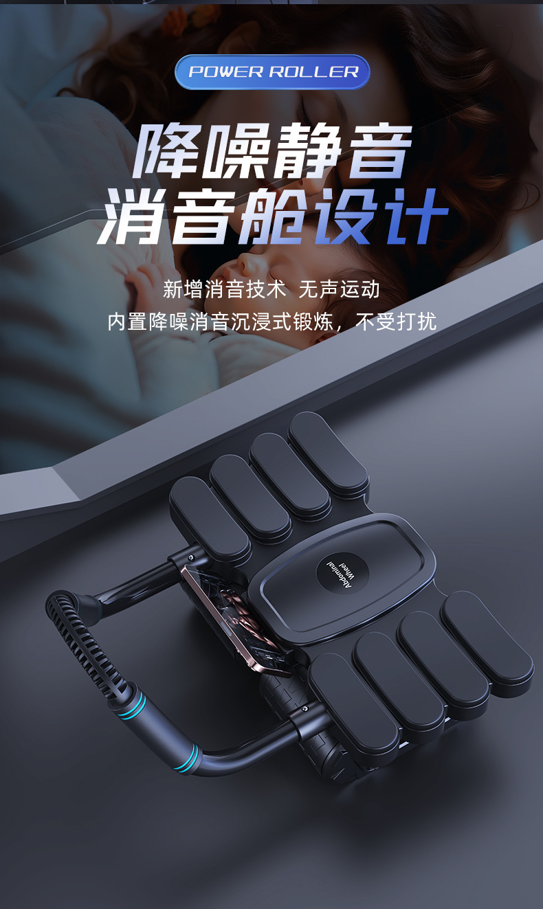 • 영어 버전 - 검정색: 4륜 및 8팔꿈치 지원 복부 휠 [스마트 APP 상호 연결] 프리 닐링 패드