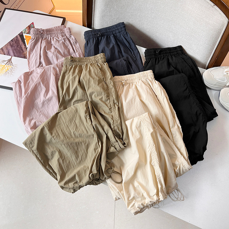 바지 여성용 캐주얼 와이드 레그 바지 땀 흡수성 빠른 건조 낙하산 바지 2024 봄 새로운 부모 자식 464888