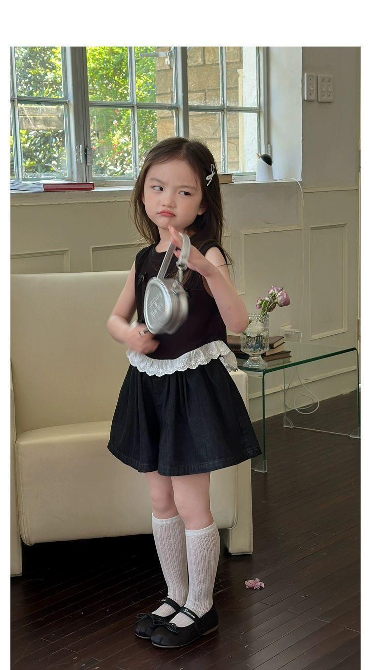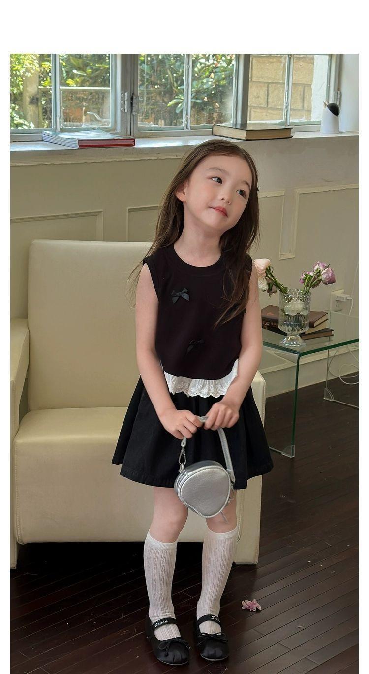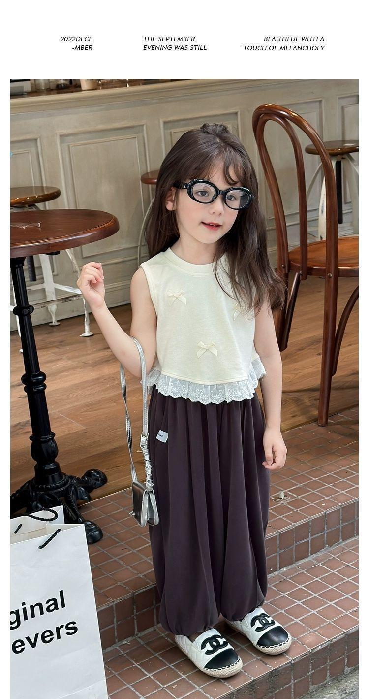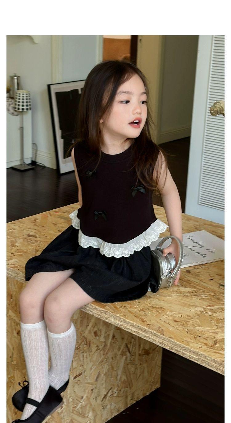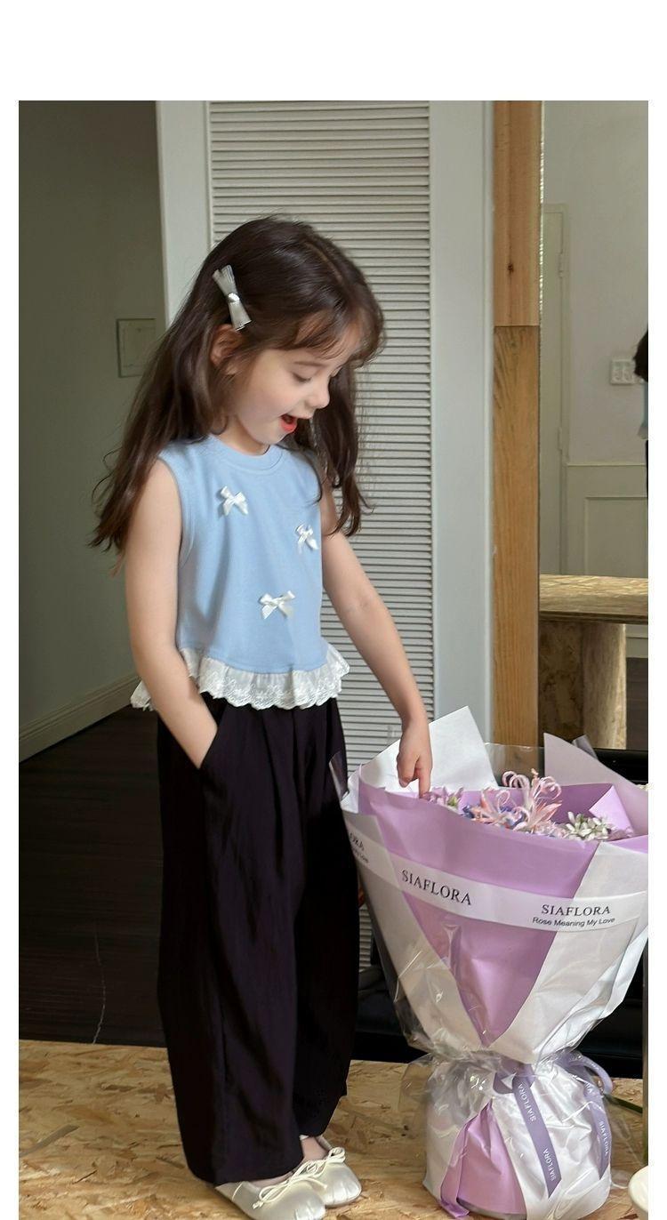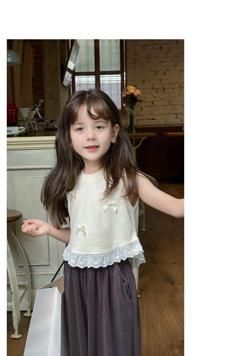 소녀의 활 짧은 조끼 여름 새로운 어린이 달콤한 스티칭 레이스 민소매 티셔츠 최고 트렌드스토어 가기