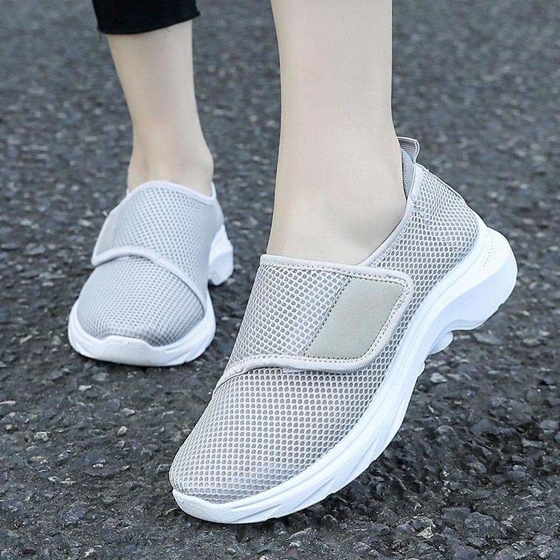 국경을 넘나 드는 봄과 여름 통기성 메쉬 플라이 짠 신발 여성용 TEMU 부드러운 밑창 벨크로 엄마 신발 편안한 경량 캐주얼 신발