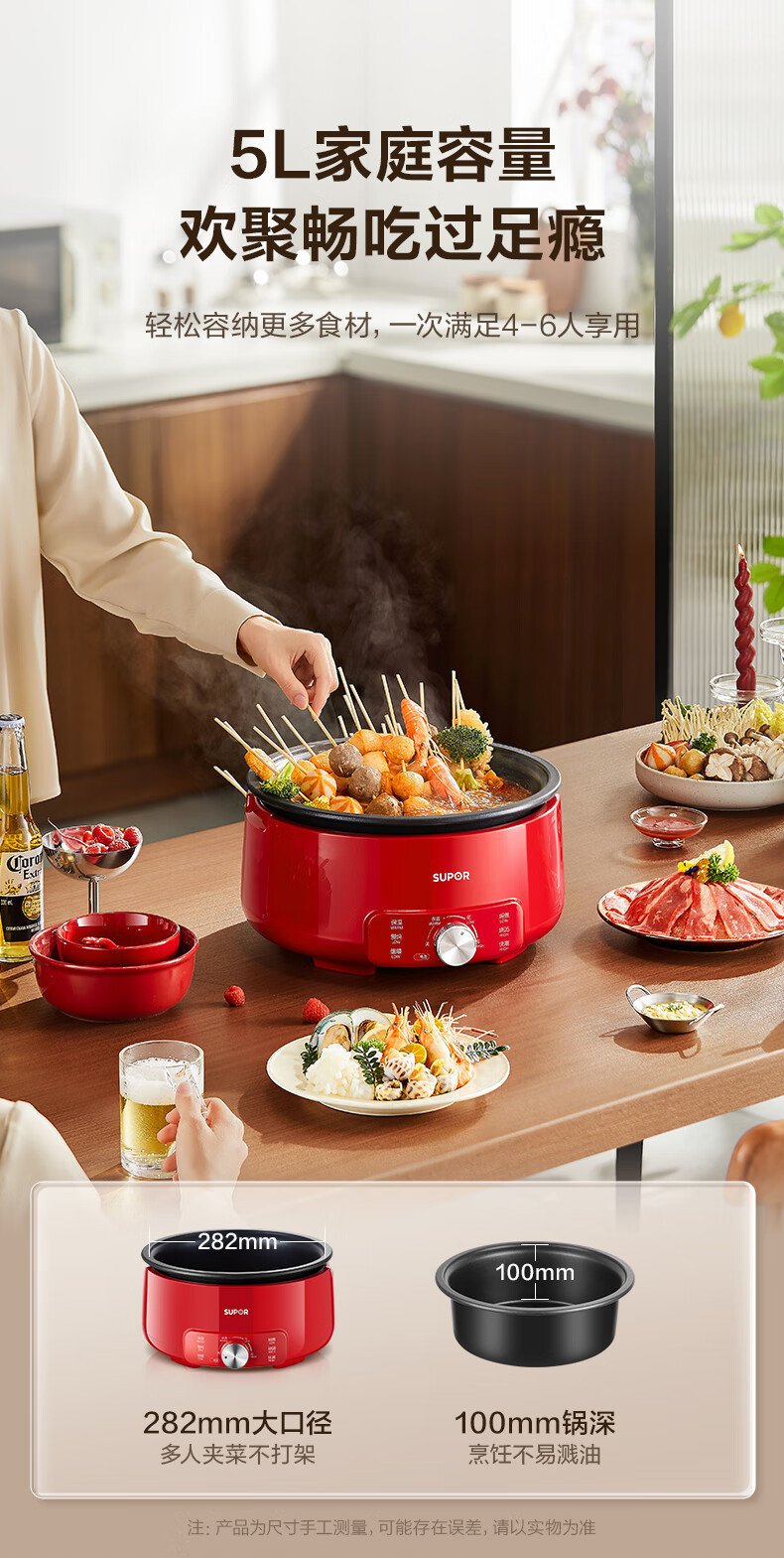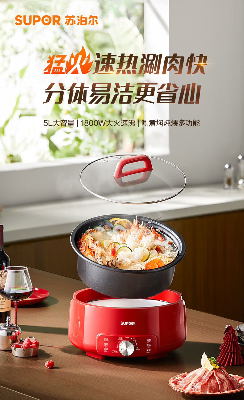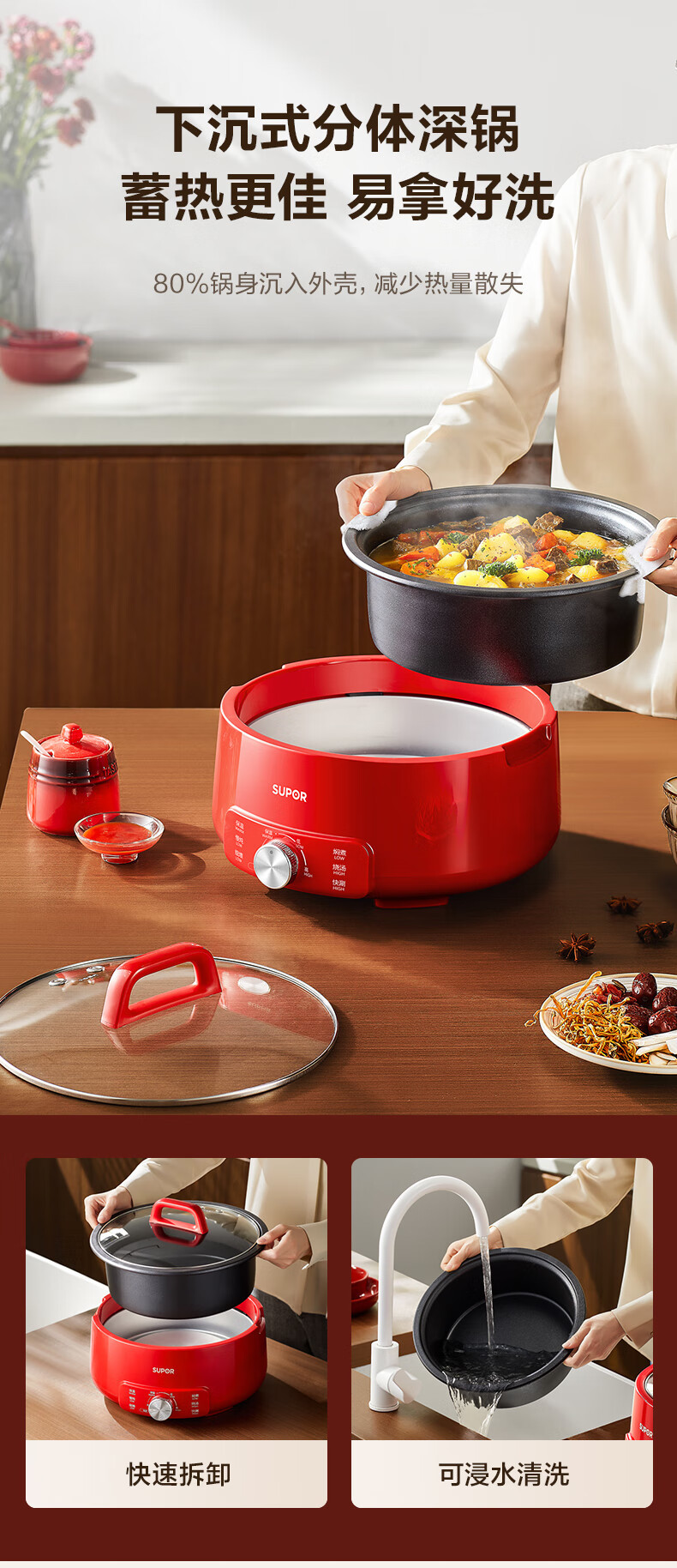 슈바 고기 비 스틱 스플릿 이동식 및 세척 가능한 전기 핫 포트 H50YK787 용 전기 핫 포트 5L 전기 요리 포트스토어 가기