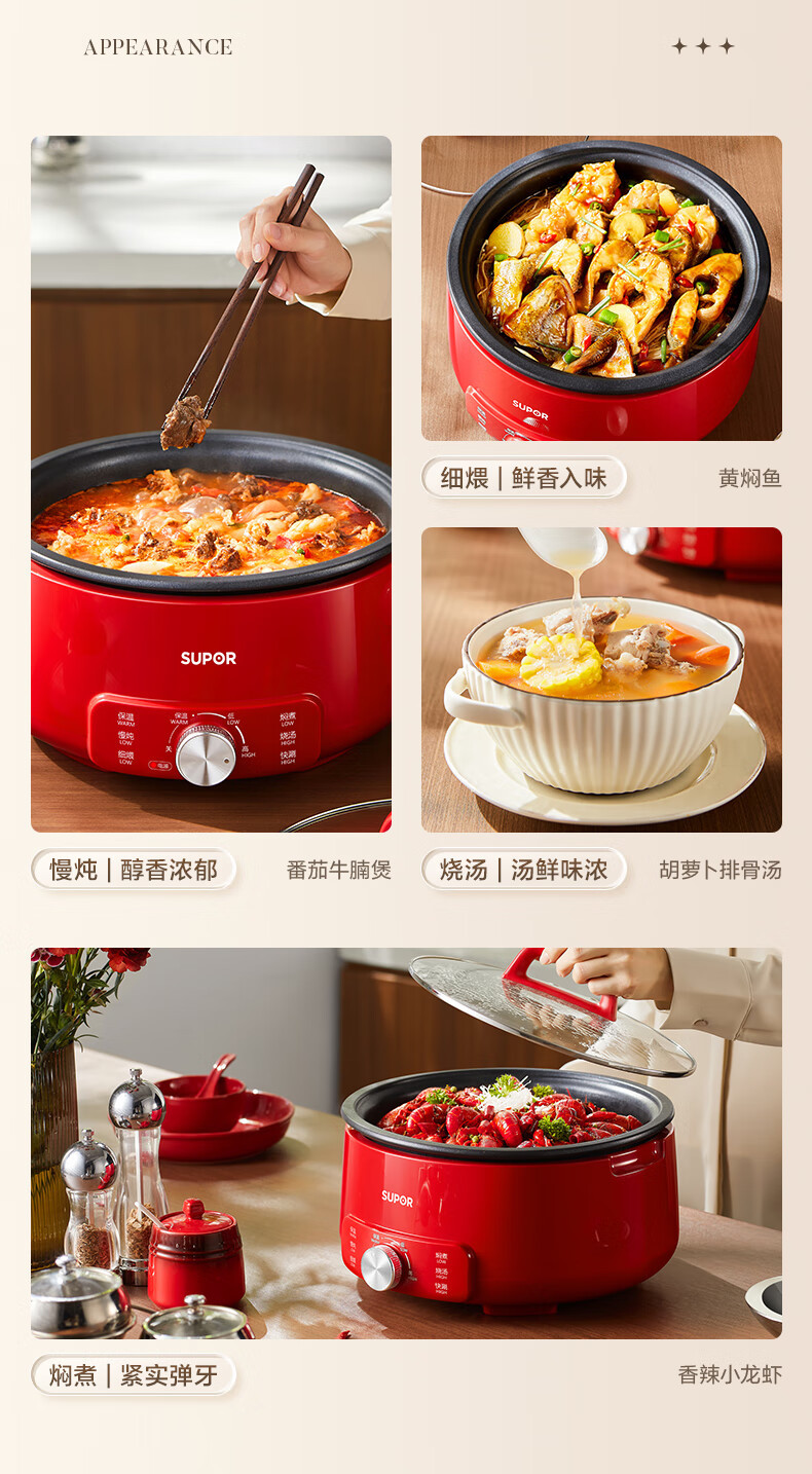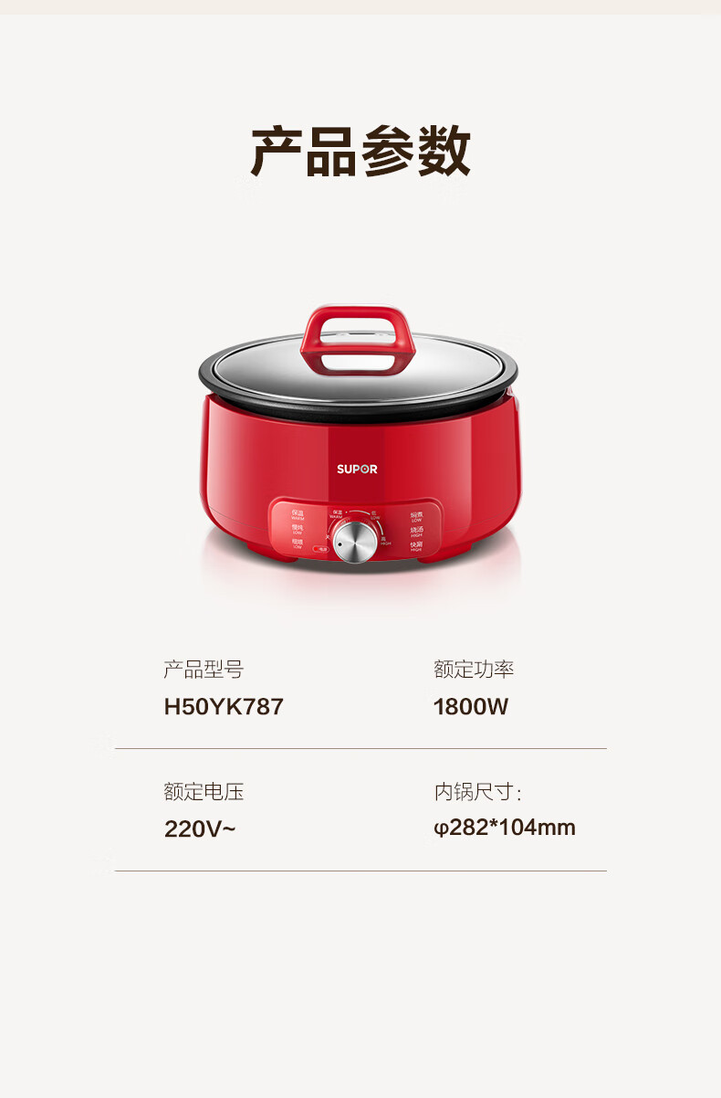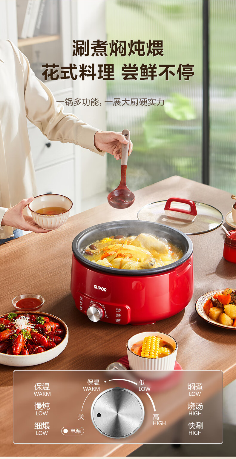 슈바 고기 비 스틱 스플릿 이동식 및 세척 가능한 전기 핫 포트 H50YK787 용 전기 핫 포트 5L 전기 요리 포트스토어 가기