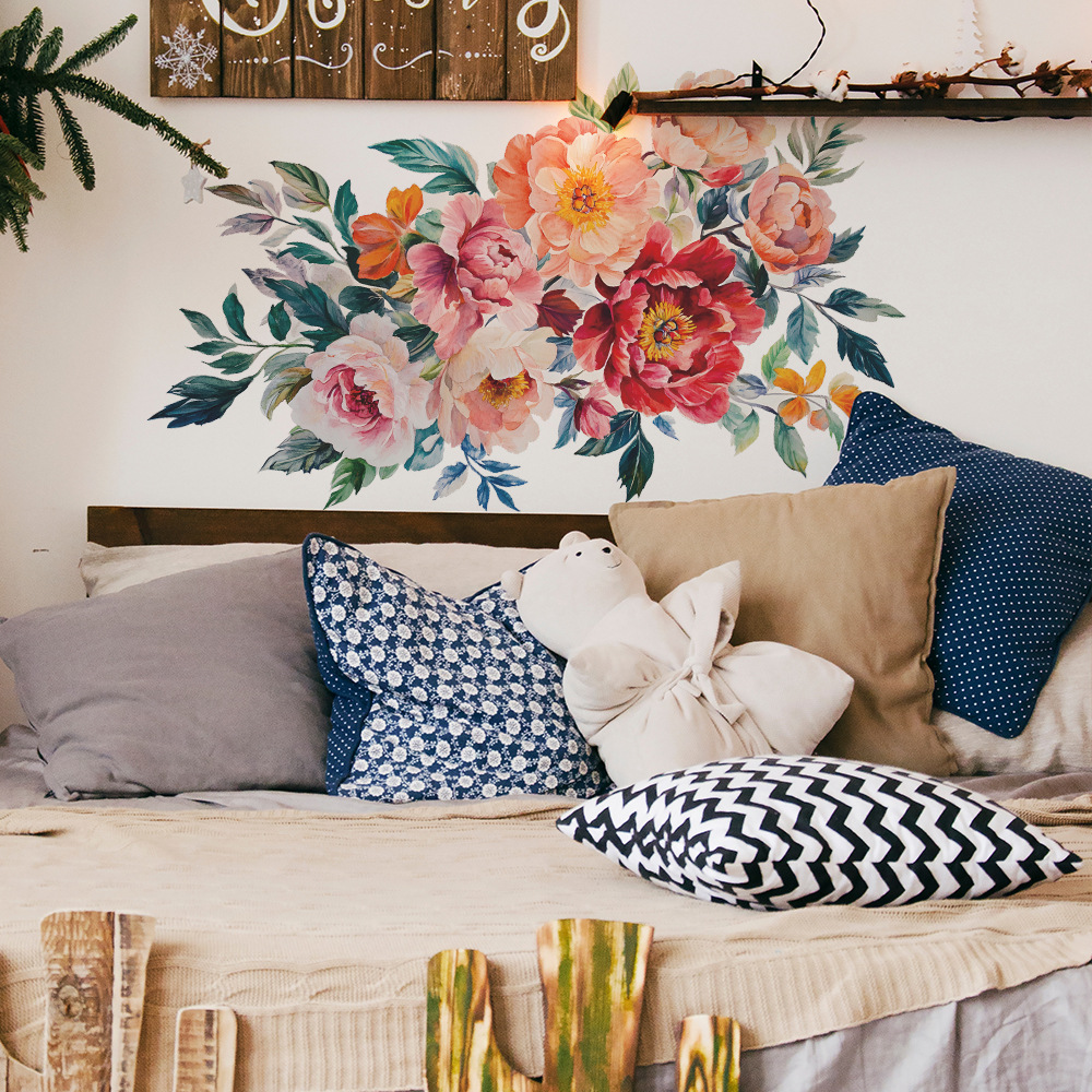 Fun-g28 대외 무역 창조적 인 꽃 녹색 잎 침실 거실 배경 미화 장식 벽 스티커 도매