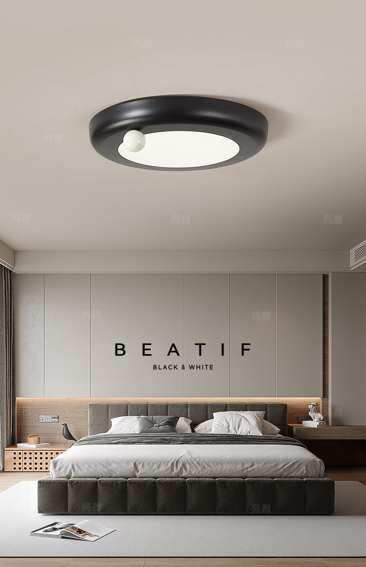 이탈리아 미니멀리스트 침실 천장 램프 현대 간단한 블랙 창조적 인 라운드 스타 눈 보호 LED 룸 마스터 침실 램프