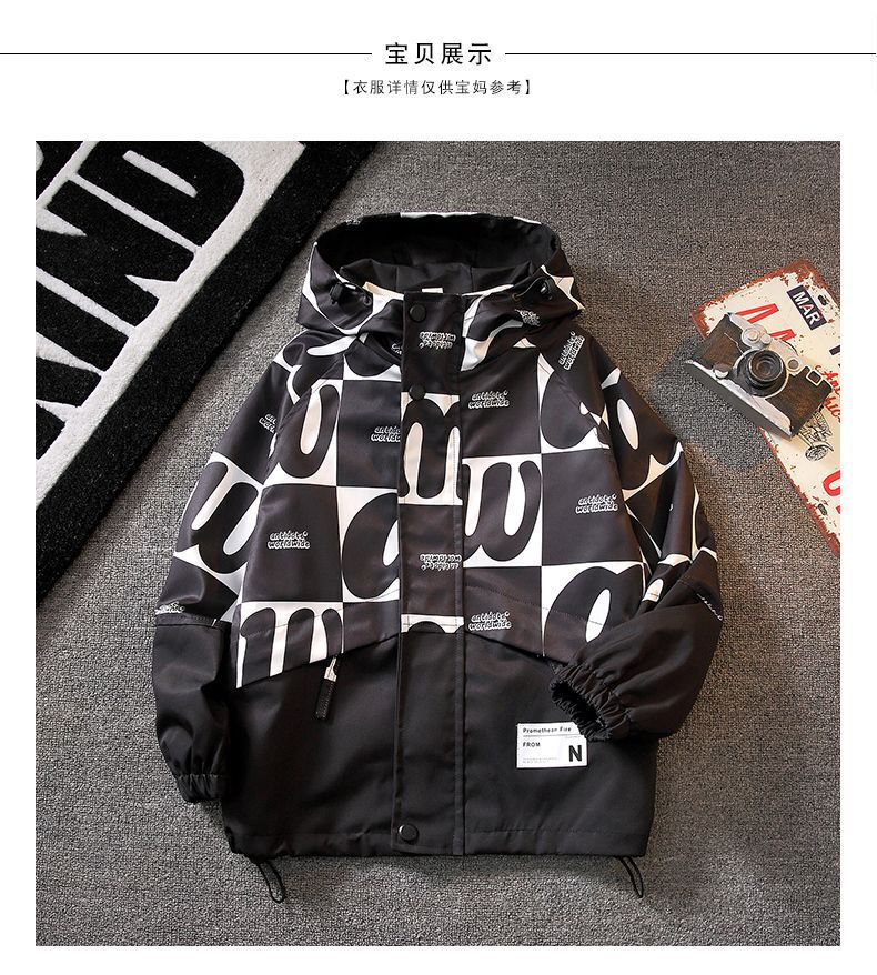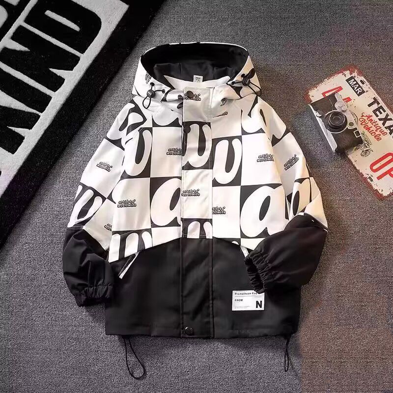 소년 2025 봄, 가을 야외 재킷 스포츠 방수 유행 멋진 윈드 브레이커 중형 및 대형 어린이 캐주얼 편지 재킷스토어 가기