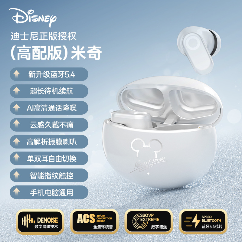 迪士尼新款蓝牙耳机真无线半入耳式HIFI音效高颜值低延迟运动游戏
