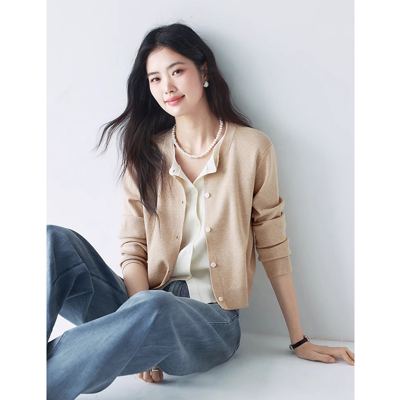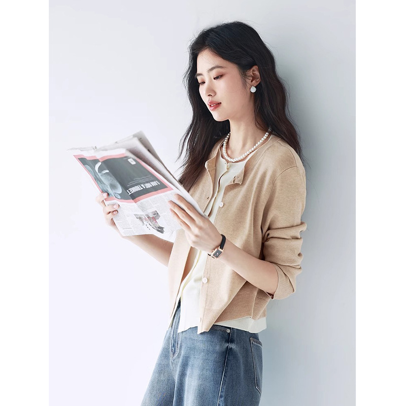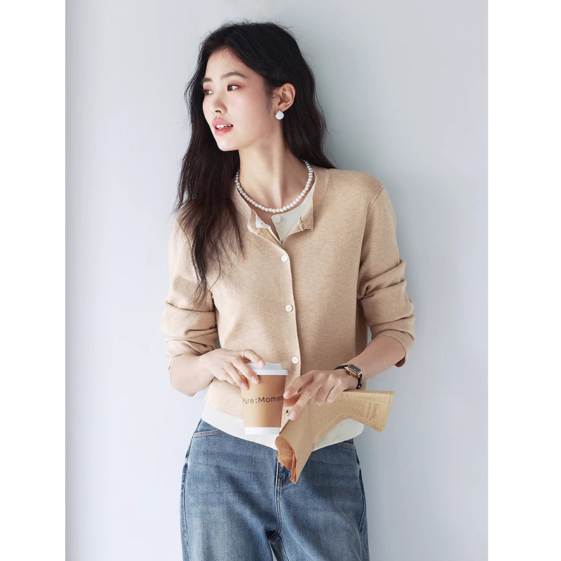 가짜 투피스 콘트라스트 컬러 패션 올 매치 니트 카디건 2025 봄 새로운 캐주얼 스웨터 재킷 1G1930441