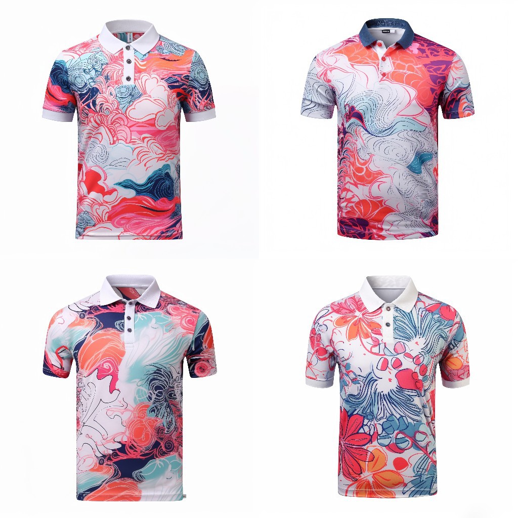 2025 봄/여름 남성 프린트 라펠 반팔 폴로셔츠 골프웨어 비즈니스 통기성
