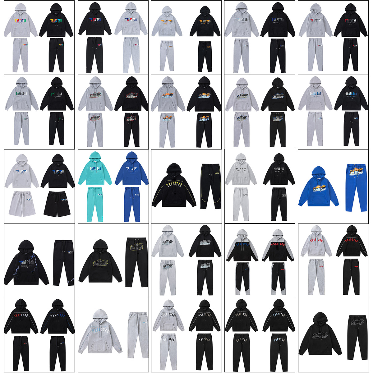 국경 간 트랩 스타 유럽과 미국의 하이 스트리트 패션 자수 스웨트 셔츠 남성 및 여성 기모 후드 풀오버 스웨트 팬츠 세트