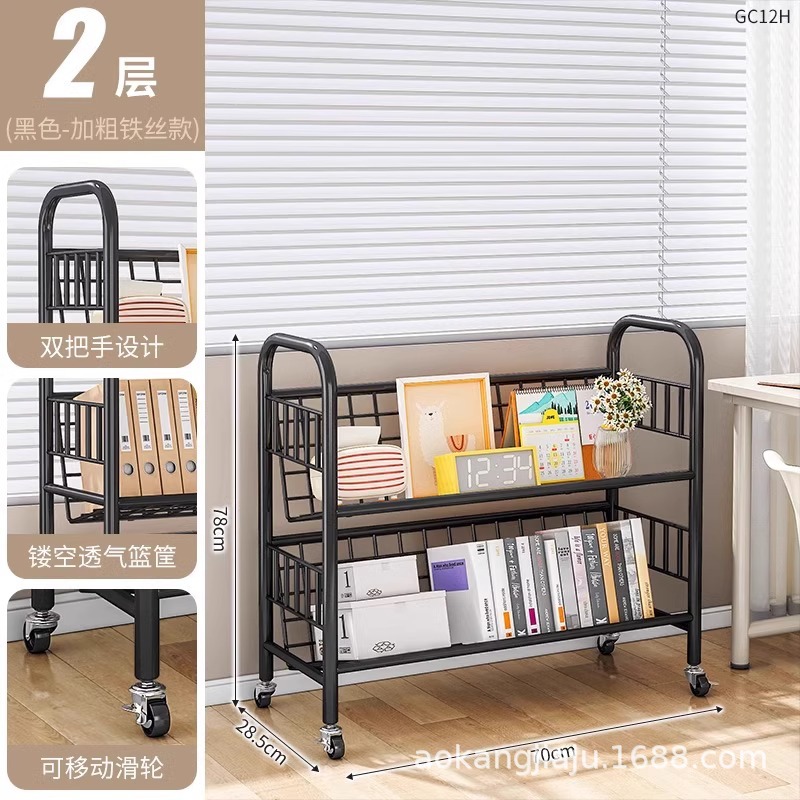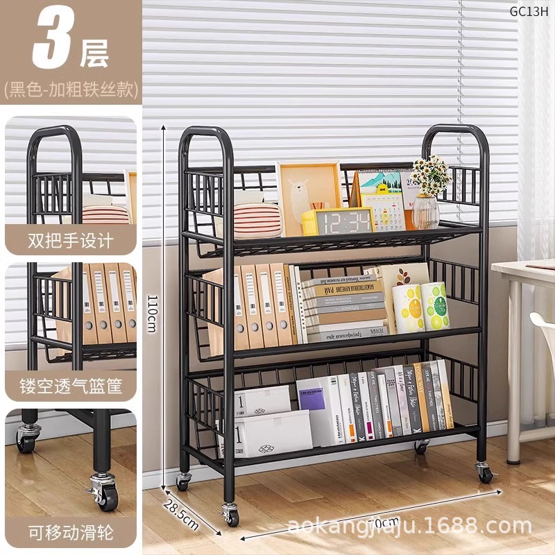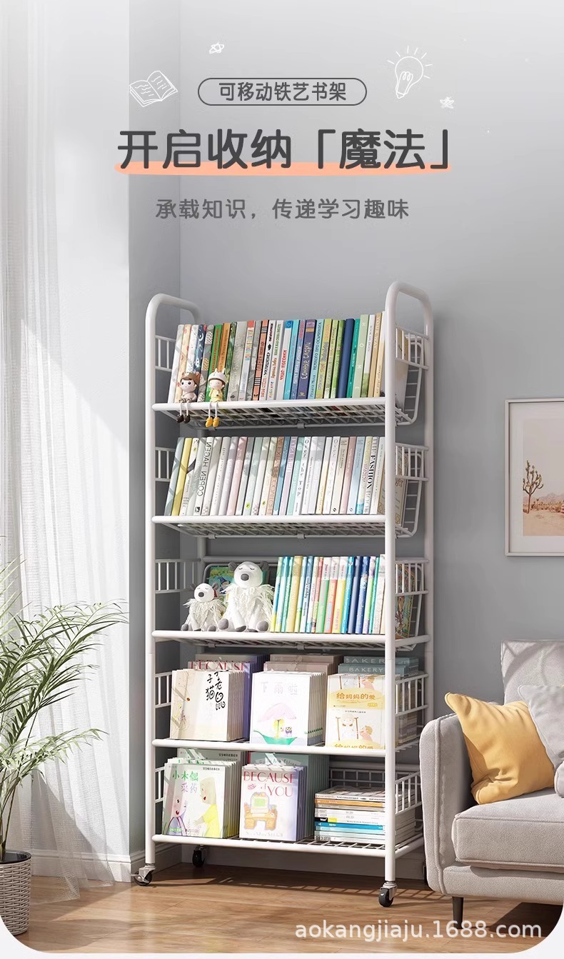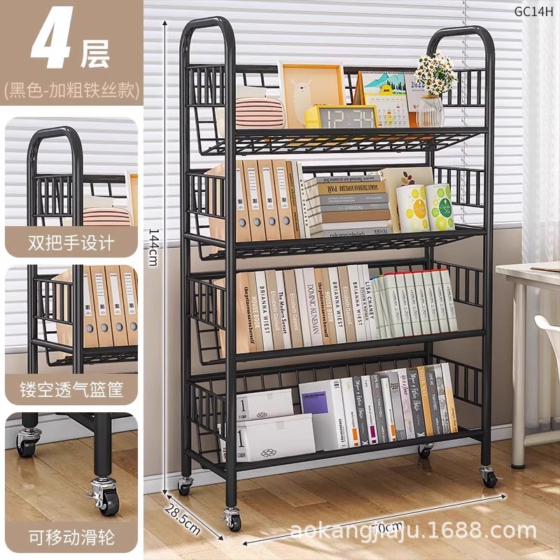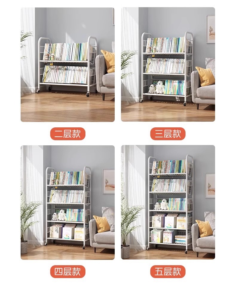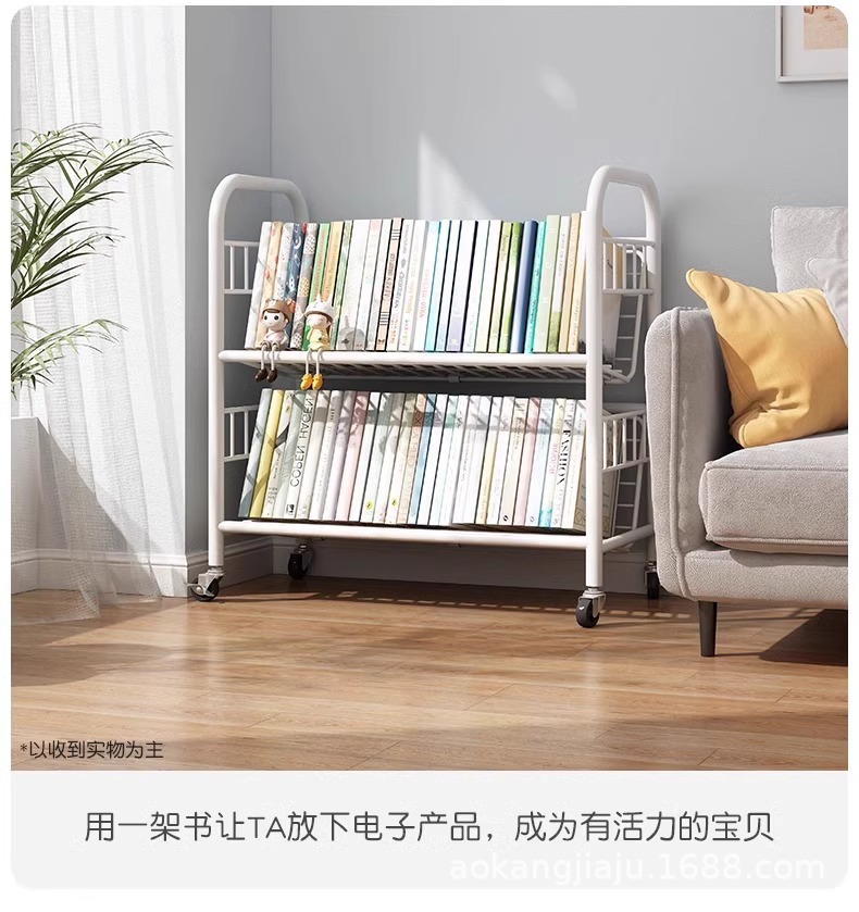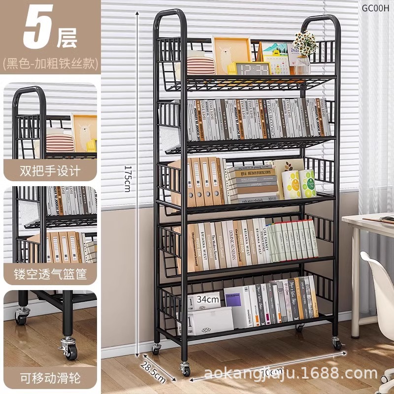 간단한 책장 바닥 저장 랙 움직일 수있는 다층 바퀴 캐비닛 어린이 작은 철 통합 벽 책장스토어 가기