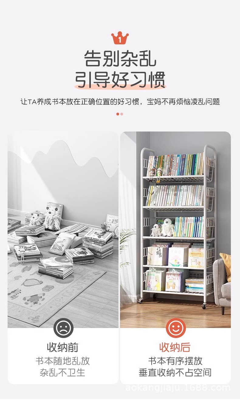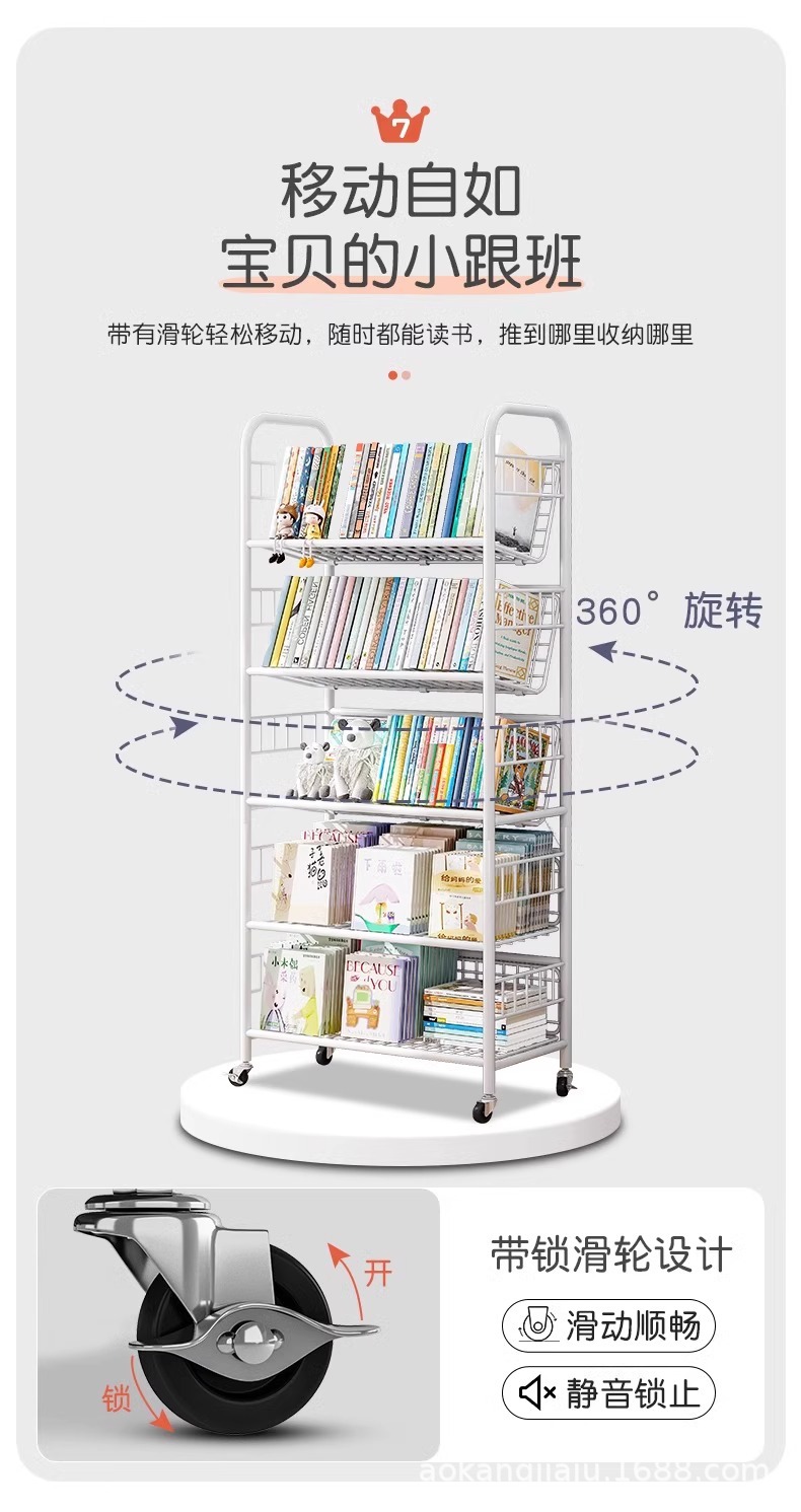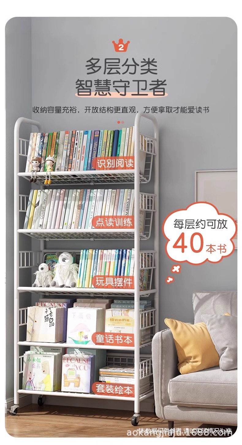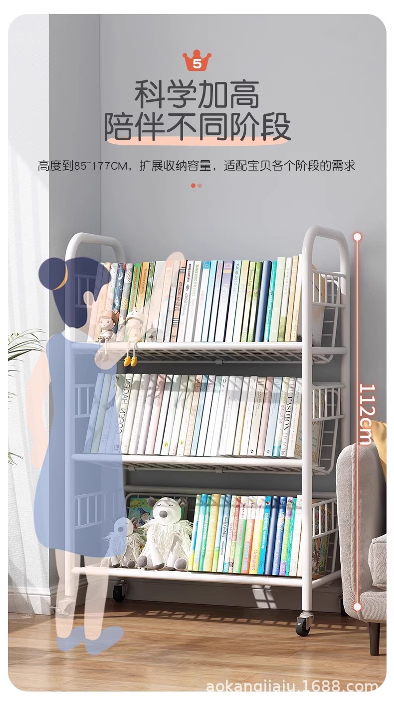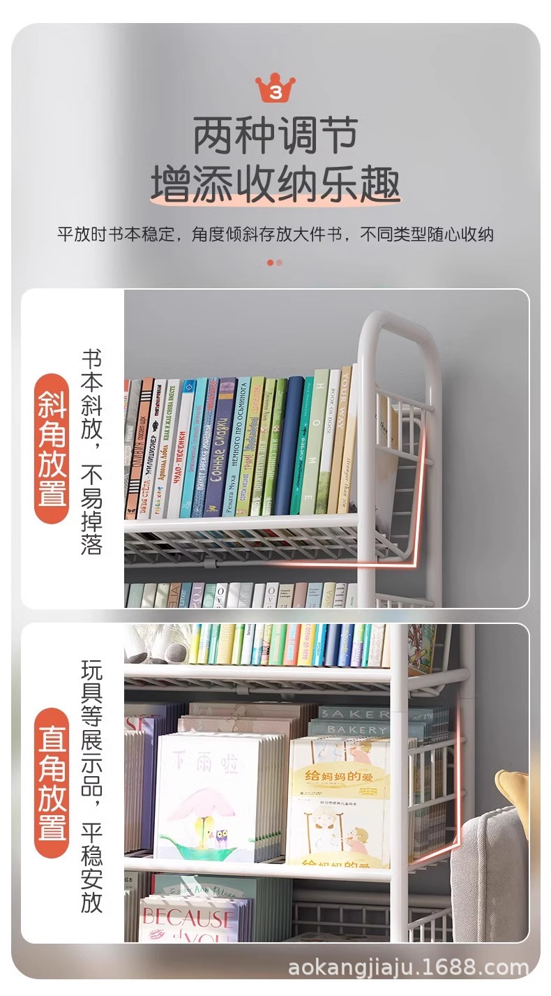 간단한 책장 바닥 저장 랙 움직일 수있는 다층 바퀴 캐비닛 어린이 작은 철 통합 벽 책장스토어 가기