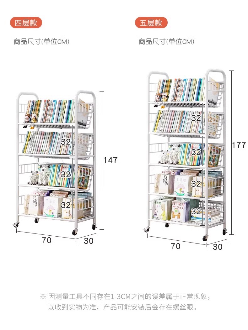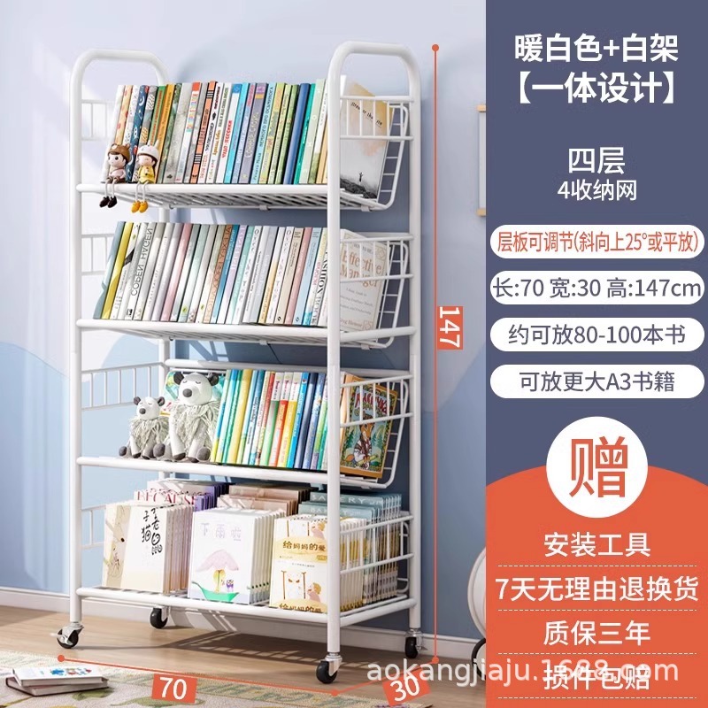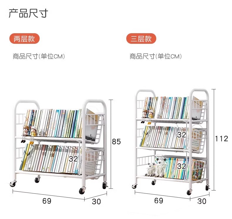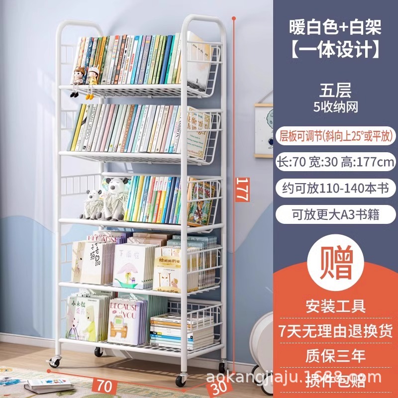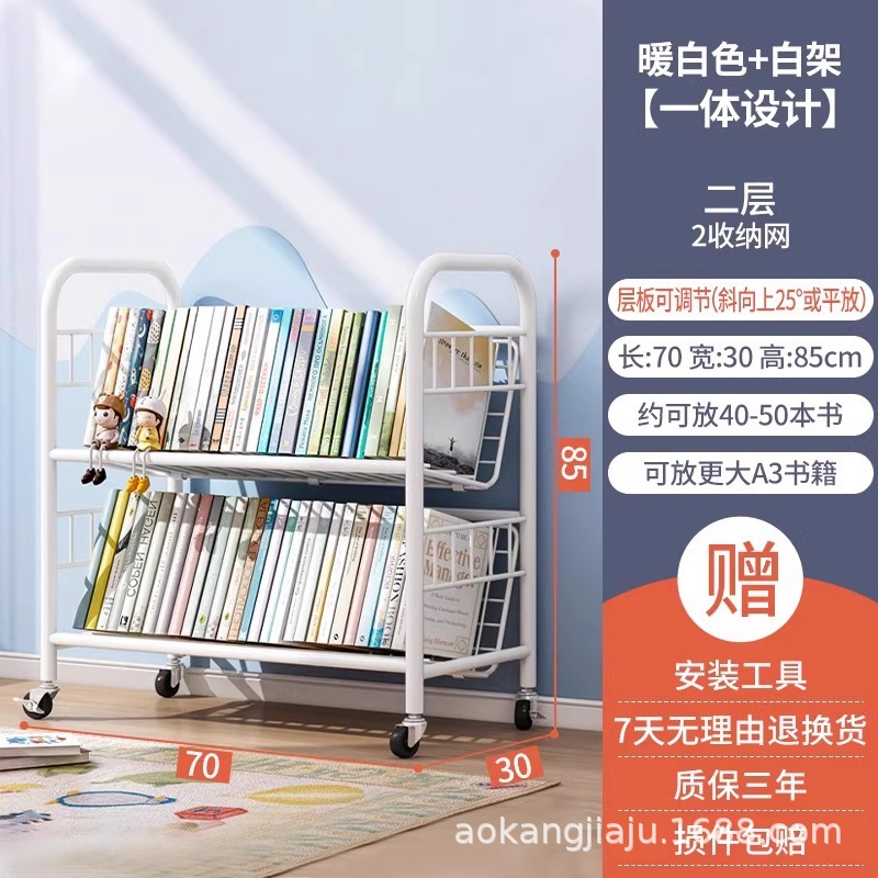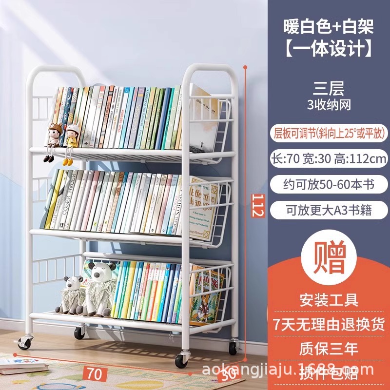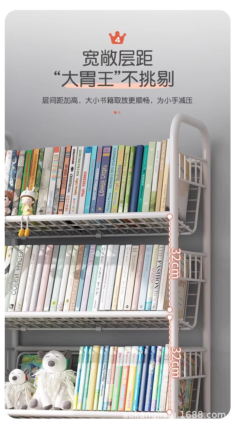 간단한 책장 바닥 저장 랙 움직일 수있는 다층 바퀴 캐비닛 어린이 작은 철 통합 벽 책장스토어 가기