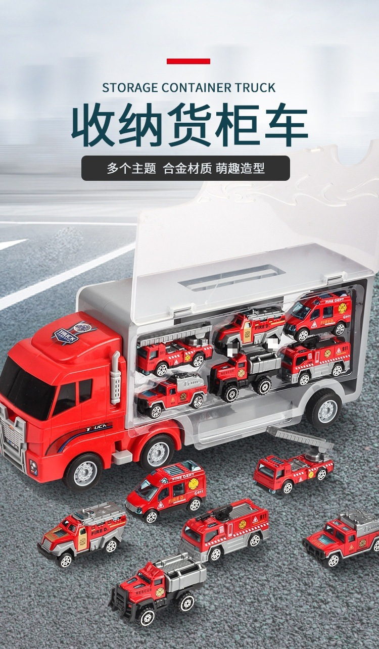 儿童玩具车收纳货柜合金玩具车模型工程消防军事车队男孩仿真送礼
