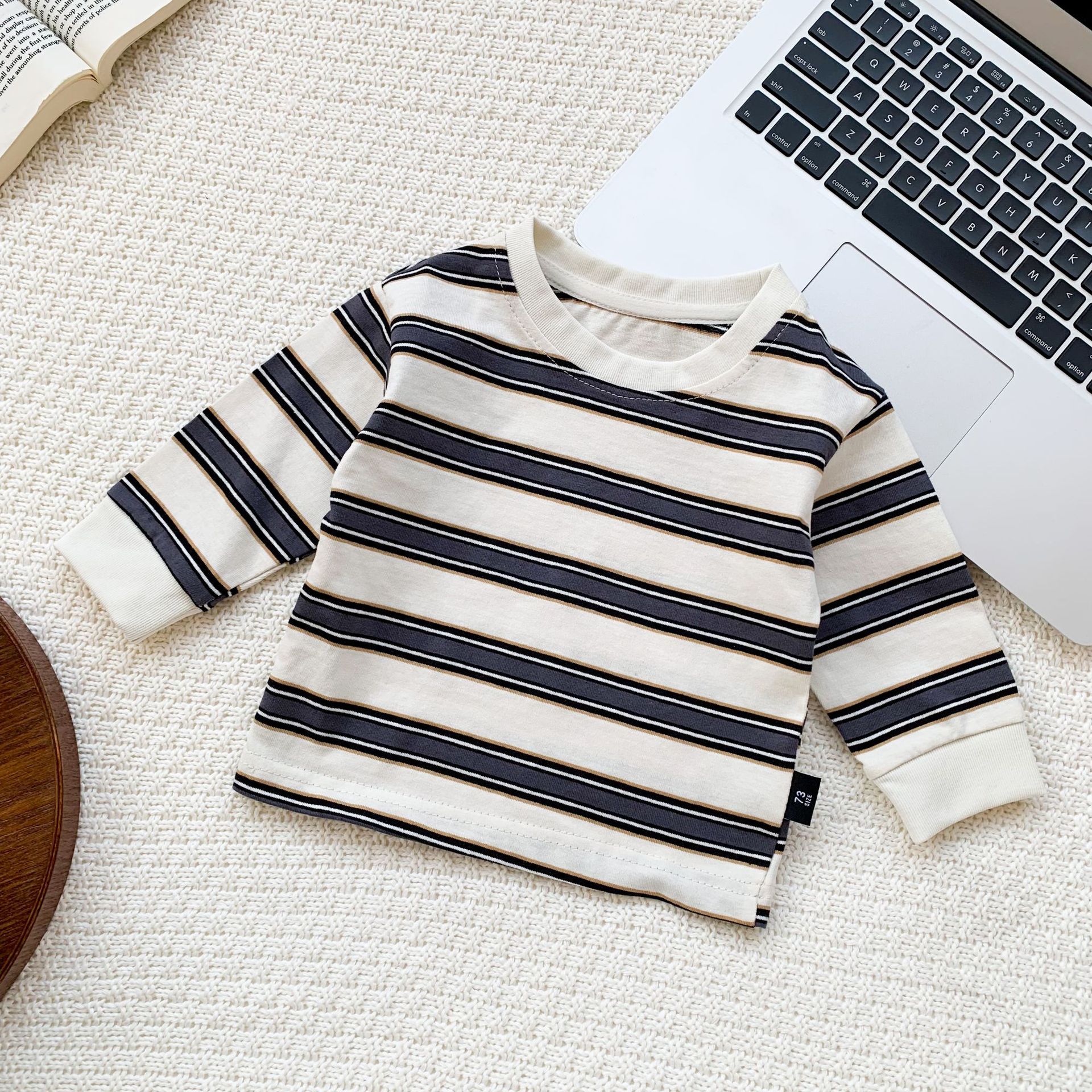 男女宝宝都可以驾驭的一款打底衫,宽窄条纹,