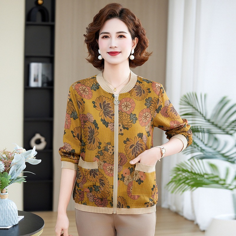 중년 및 노인 여성의 봄 긴 소매 탑 2025 새로운 중년 어머니 봄과 가을 서양식 플러스 사이즈 재킷 코트스토어 가기