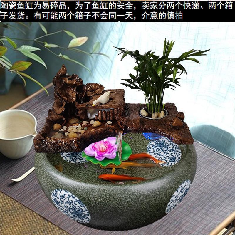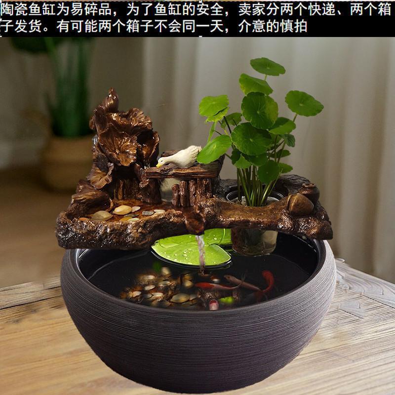고대 방법 물고기 탱크 흐르는 물 필터 순환 시스템 창조적 인 장식품 거실 조경 세라믹 작은 둥근 금붕어 탱크