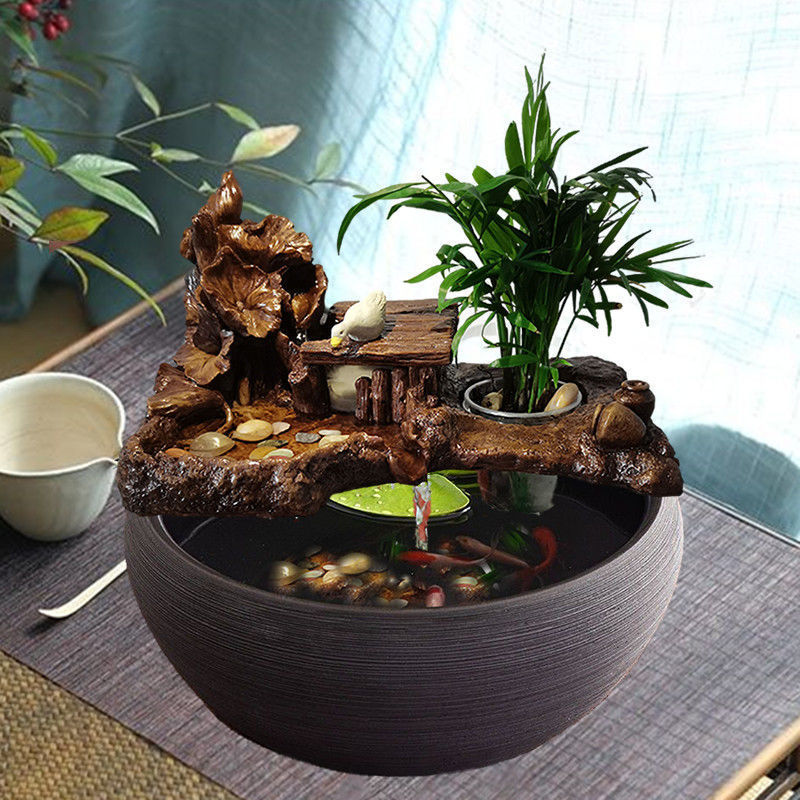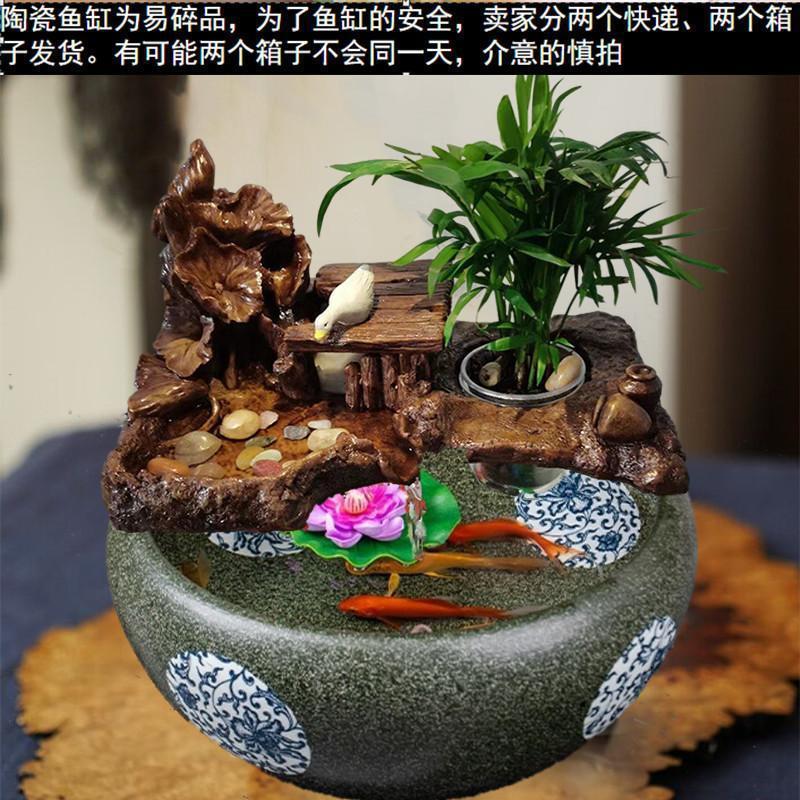 고대 방법 물고기 탱크 흐르는 물 필터 순환 시스템 창조적 인 장식품 거실 조경 세라믹 작은 둥근 금붕어 탱크스토어 가기