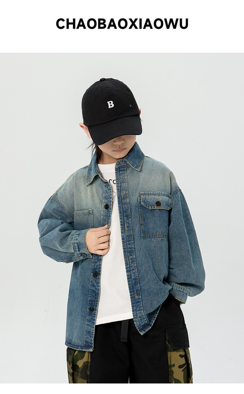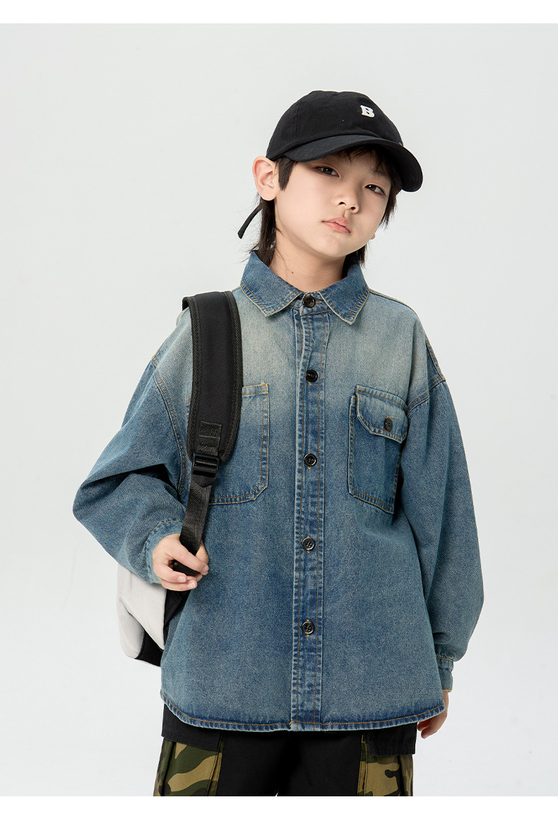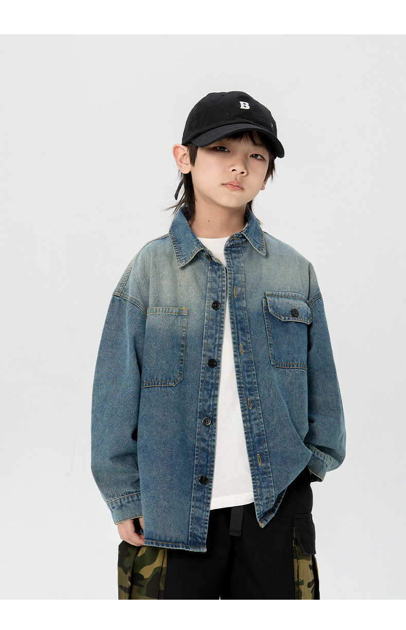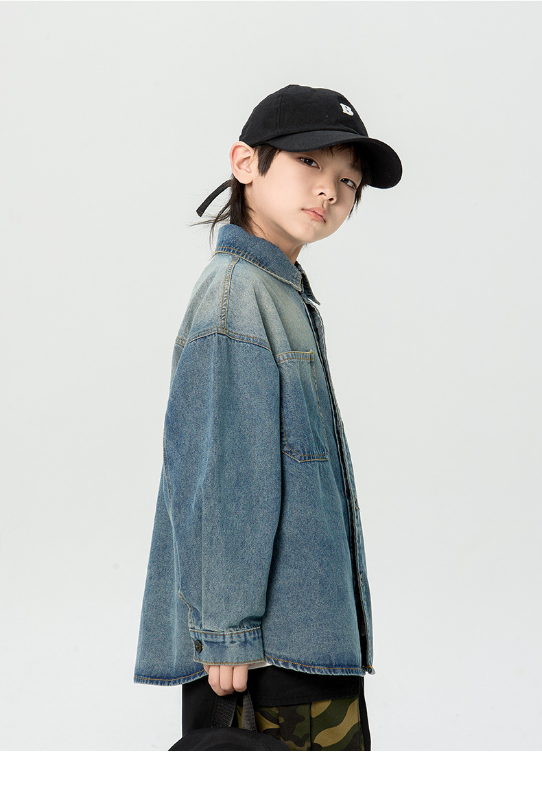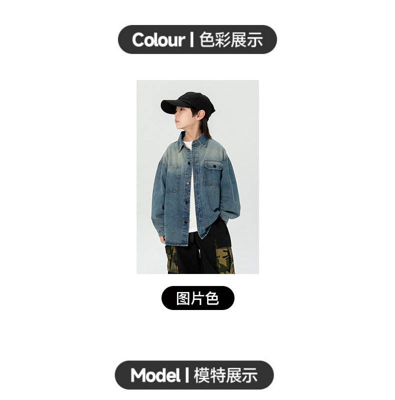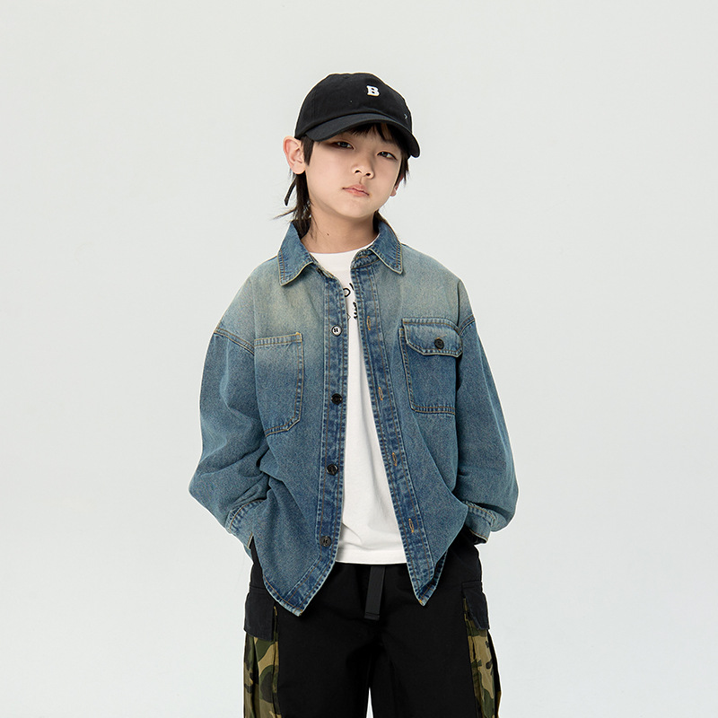일본식 소년 셔츠 2025 봄 새로운 어린이 캐주얼 데님 코트 남자 아기의 유행 탑스토어 가기