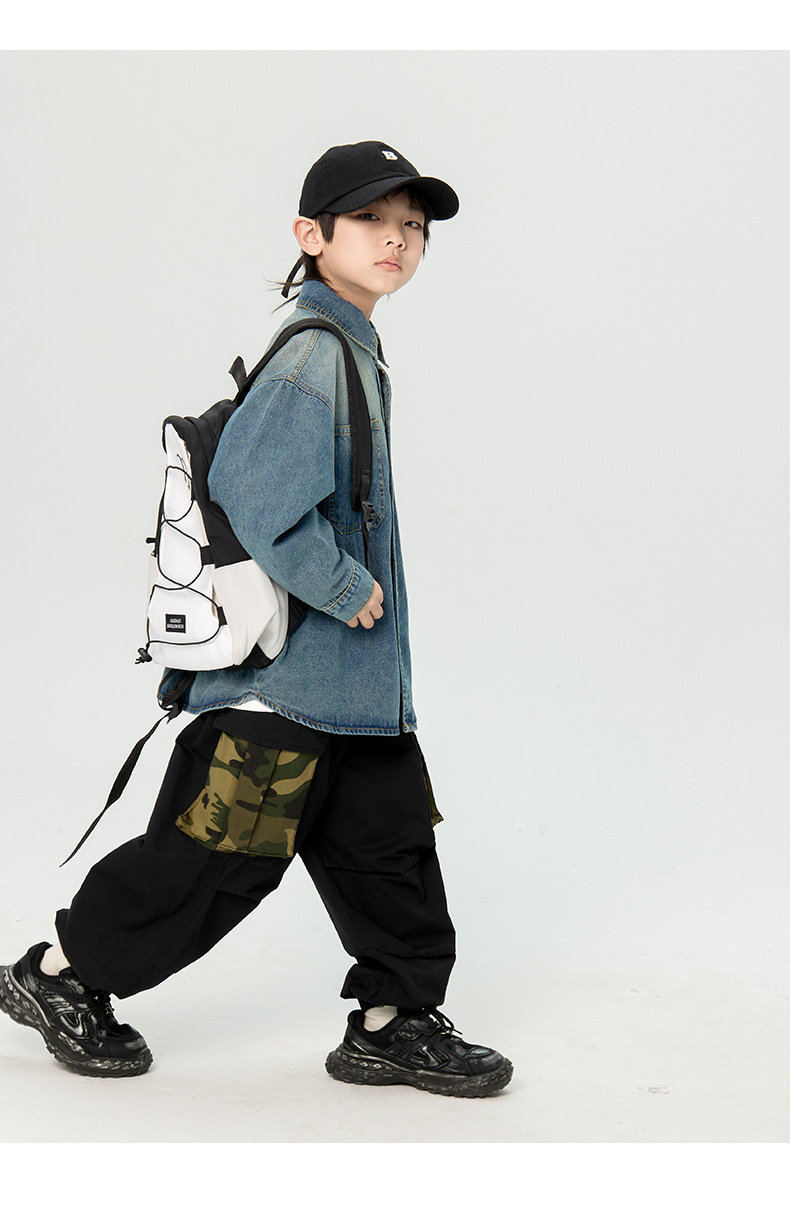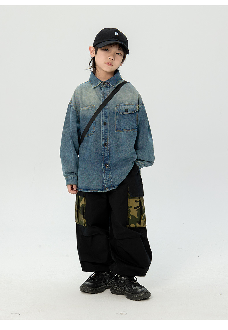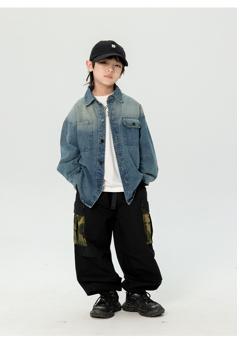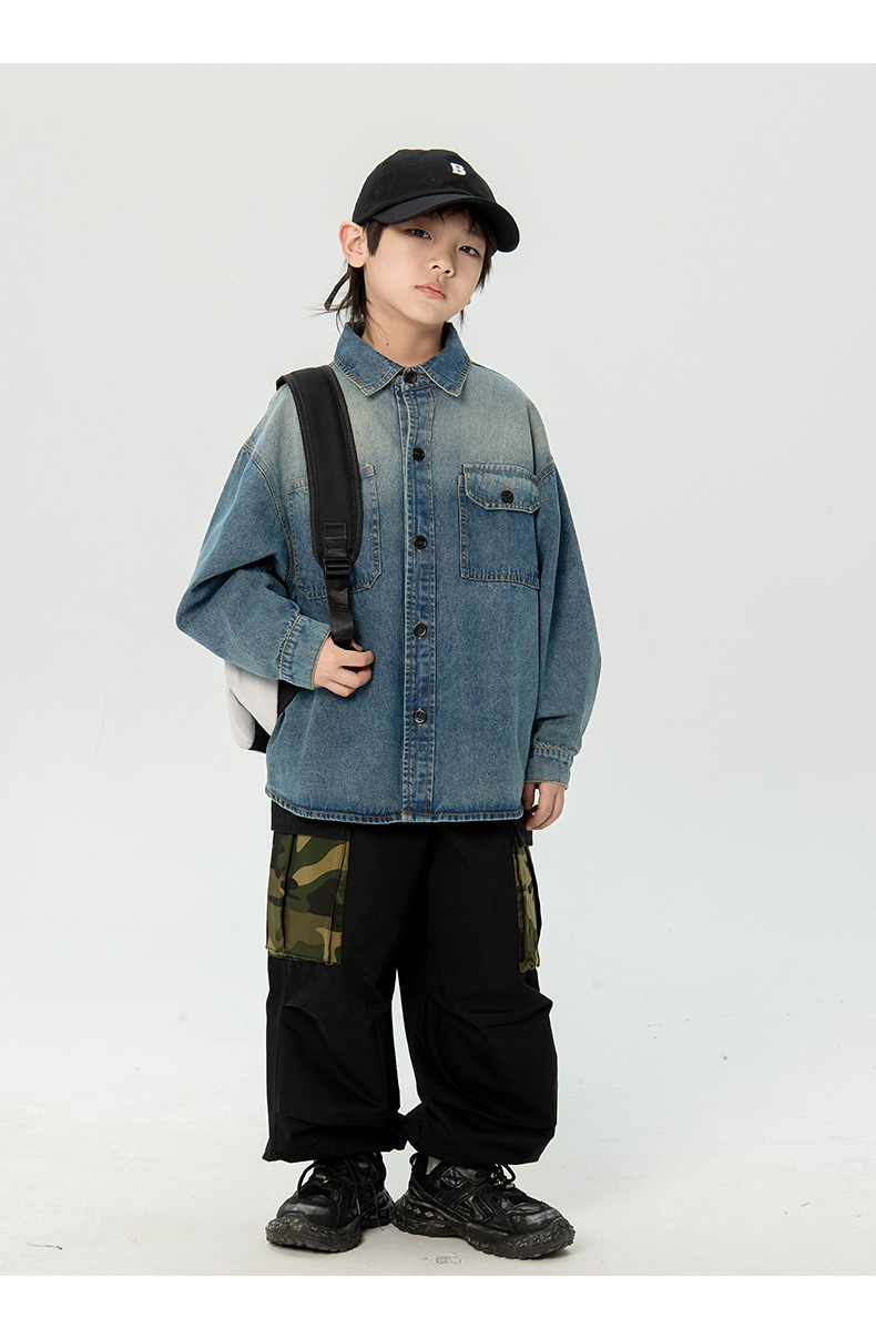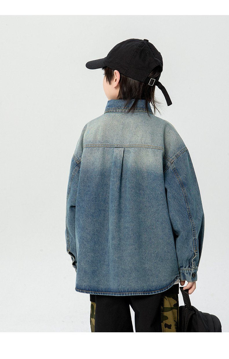 일본식 소년 셔츠 2025 봄 새로운 어린이 캐주얼 데님 코트 남자 아기의 유행 탑스토어 가기