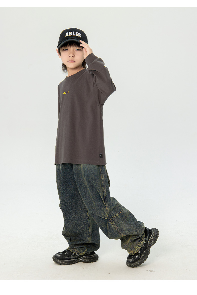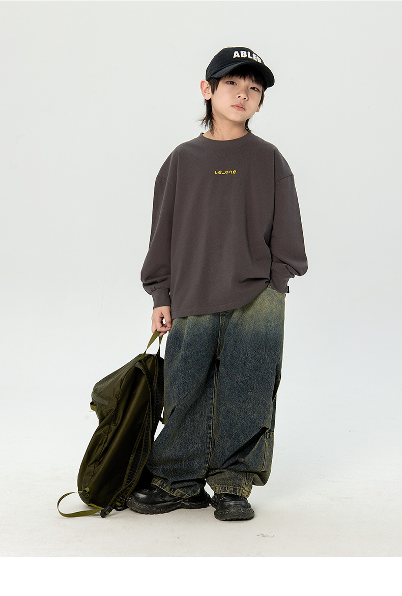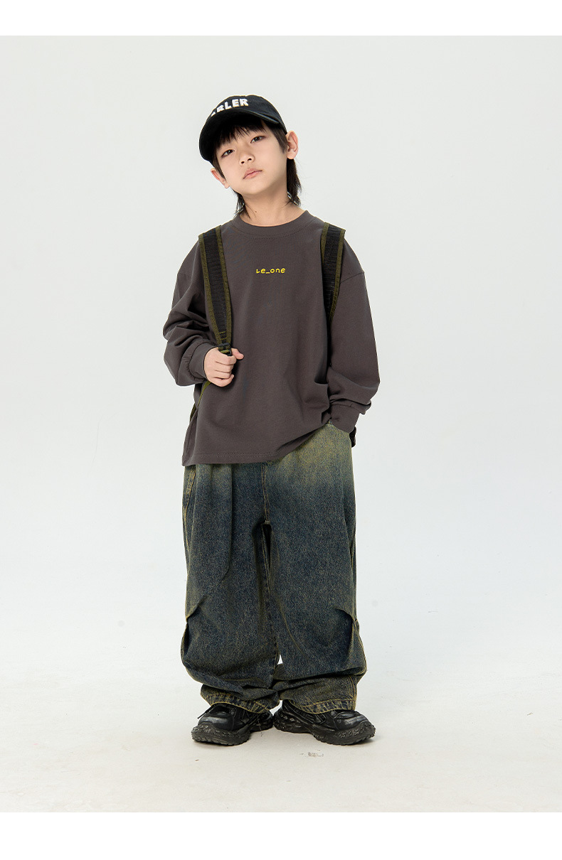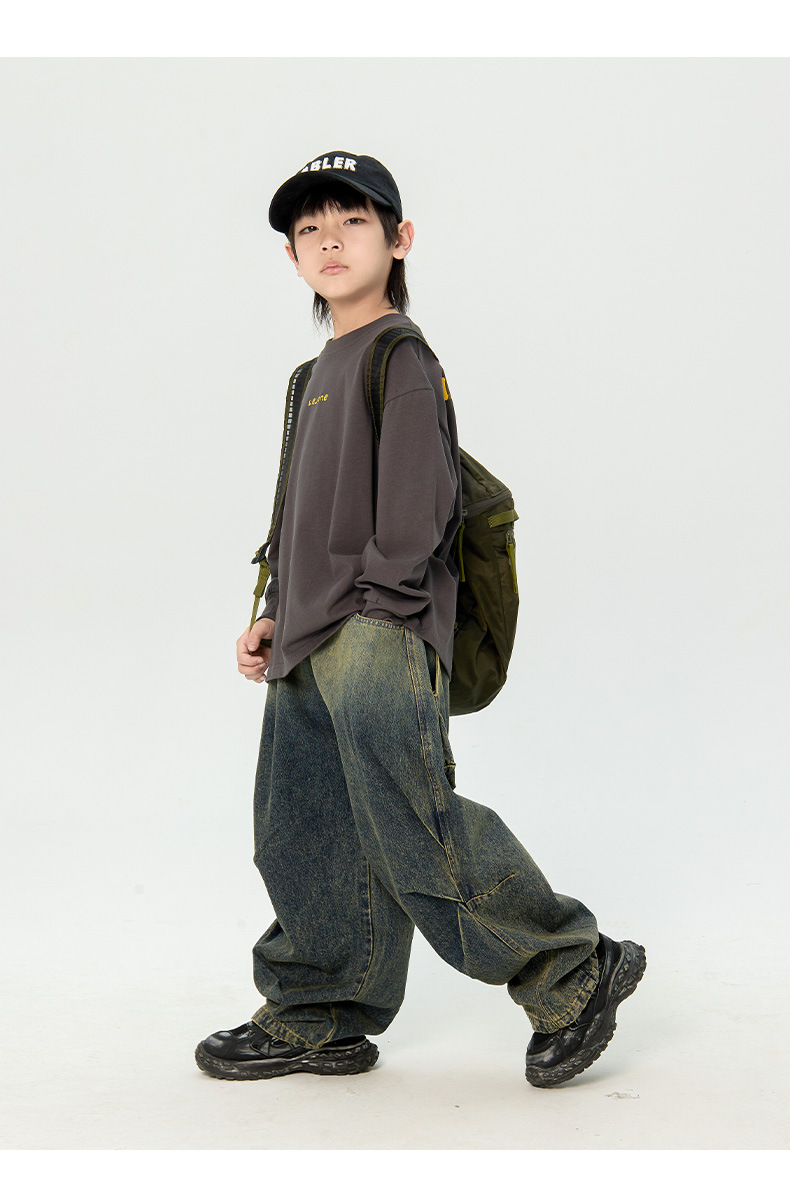소년 늙은 청바지 2025 봄 새로운 어린이 한국 스타일 점진적 변화 스트레이트 다리 바지 잘 생긴 남자의 보물 넓은 다리 바지