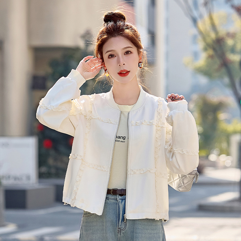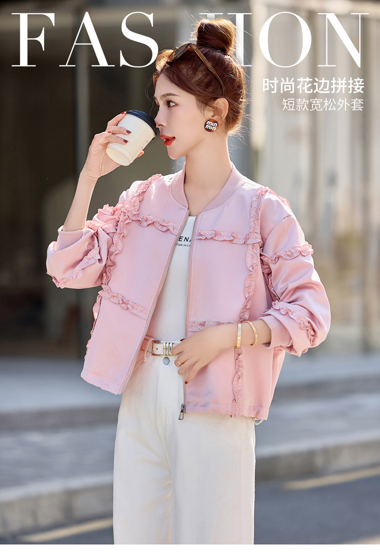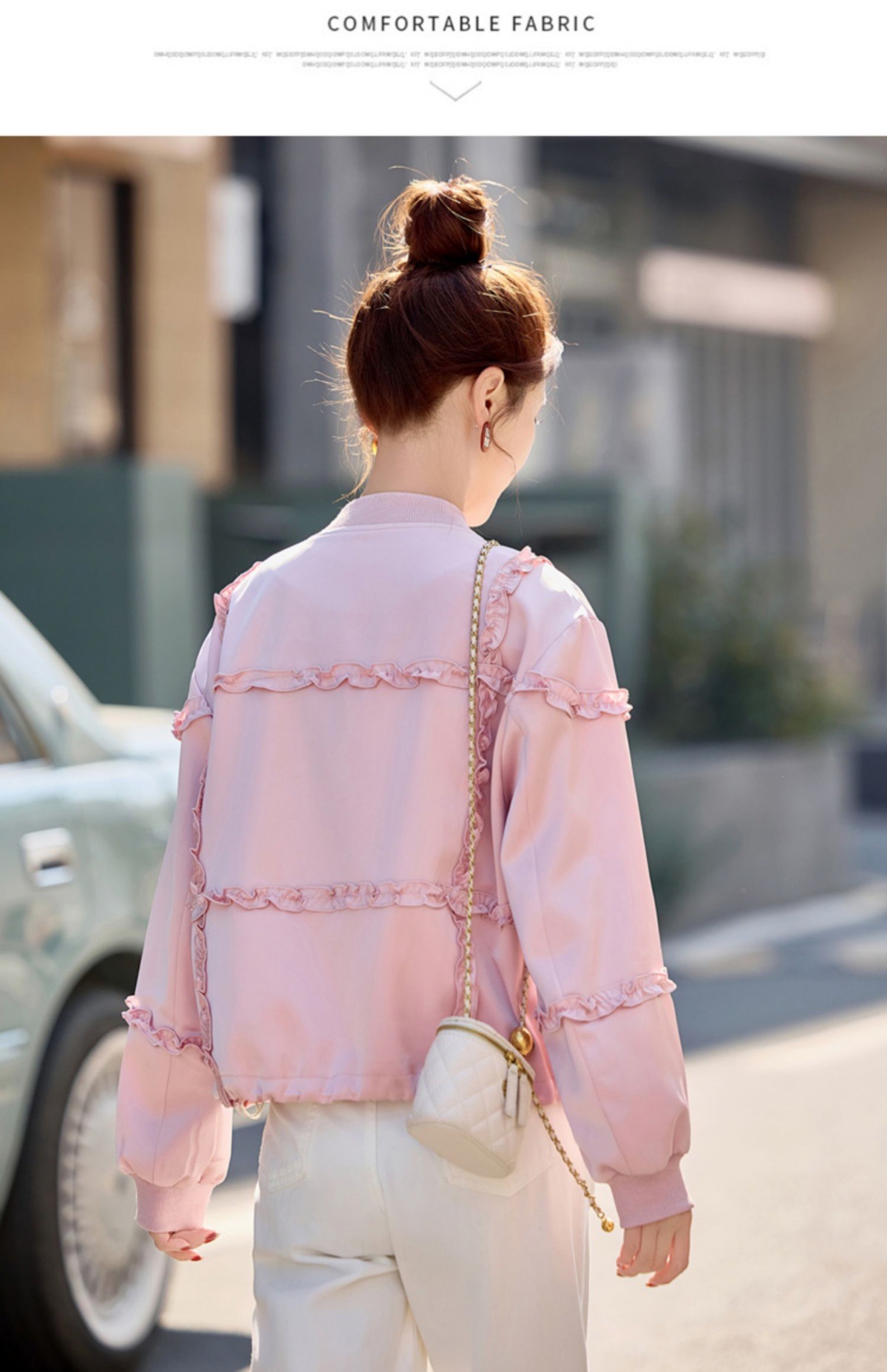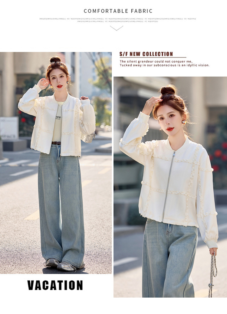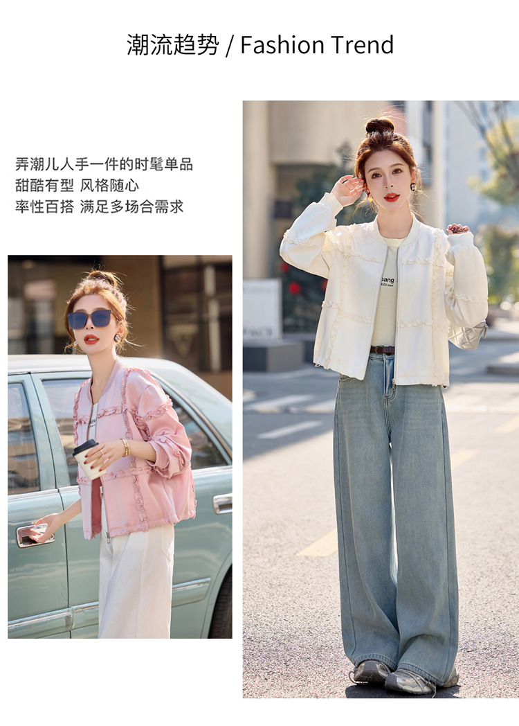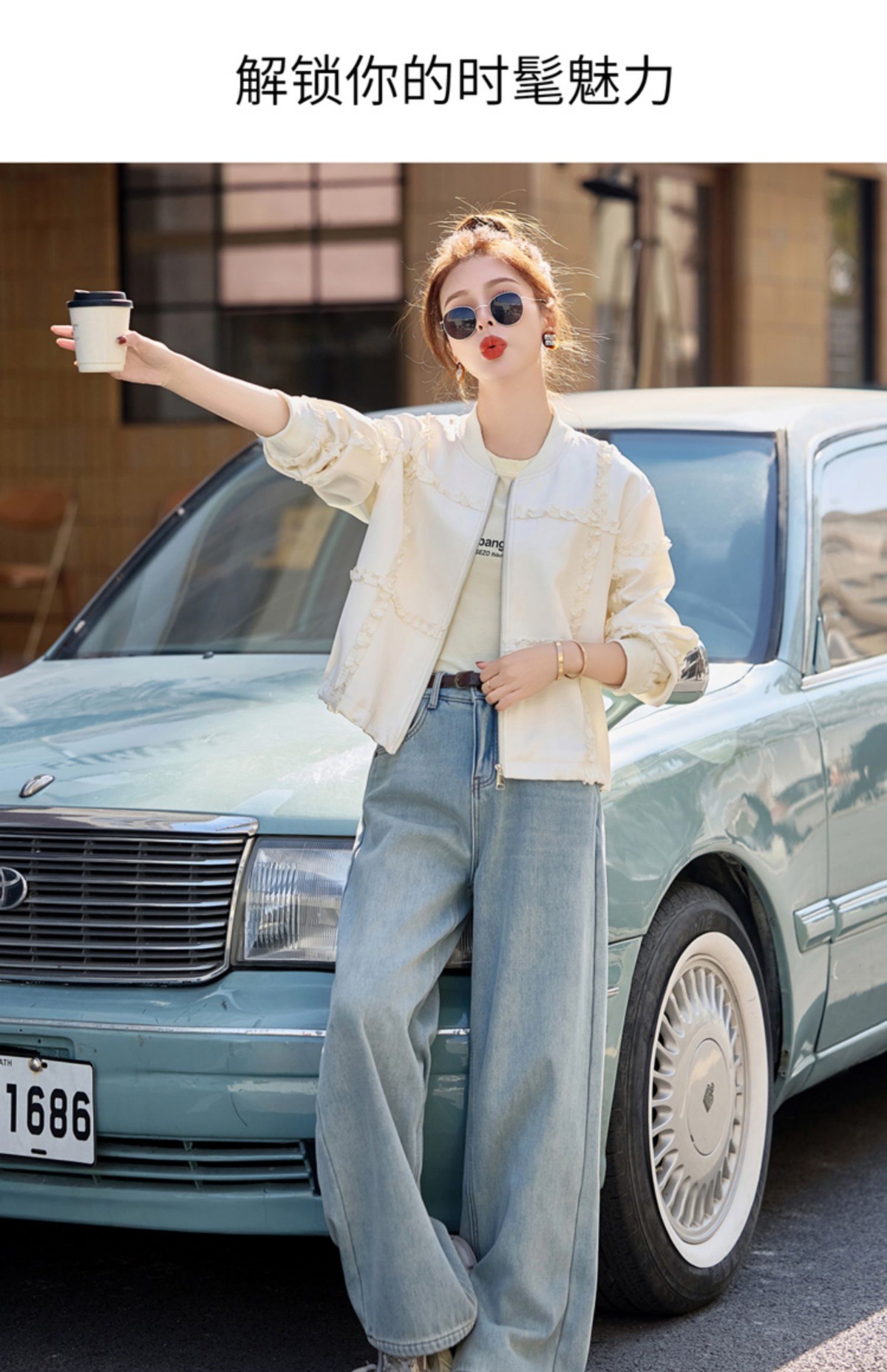 블루 캐주얼 코트 여자 2025 봄과 가을 새로운 도착 귀 테두리 느슨한 나이 감소 작은 야구 세트 재킷 탑