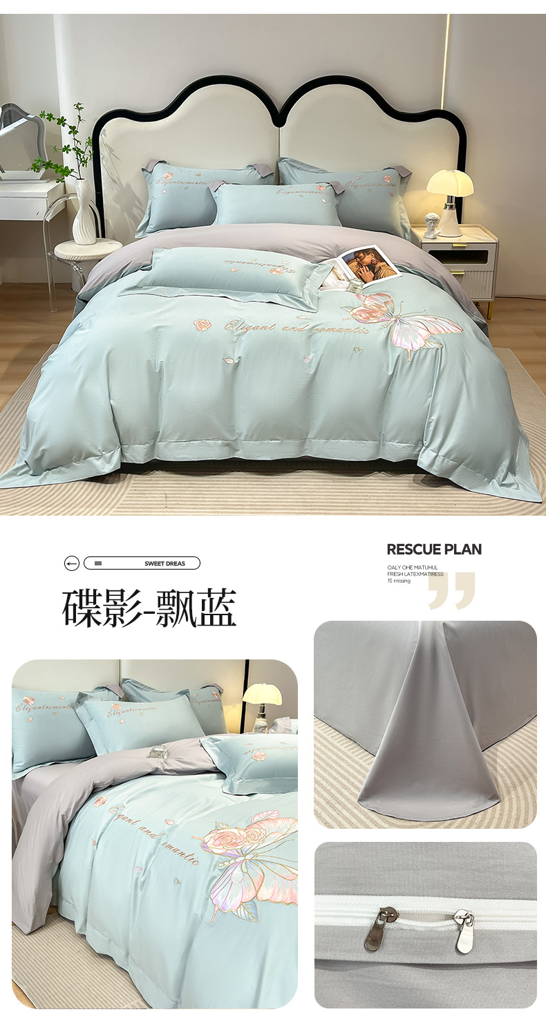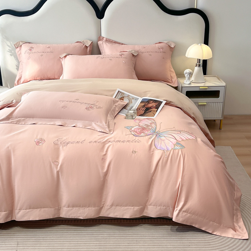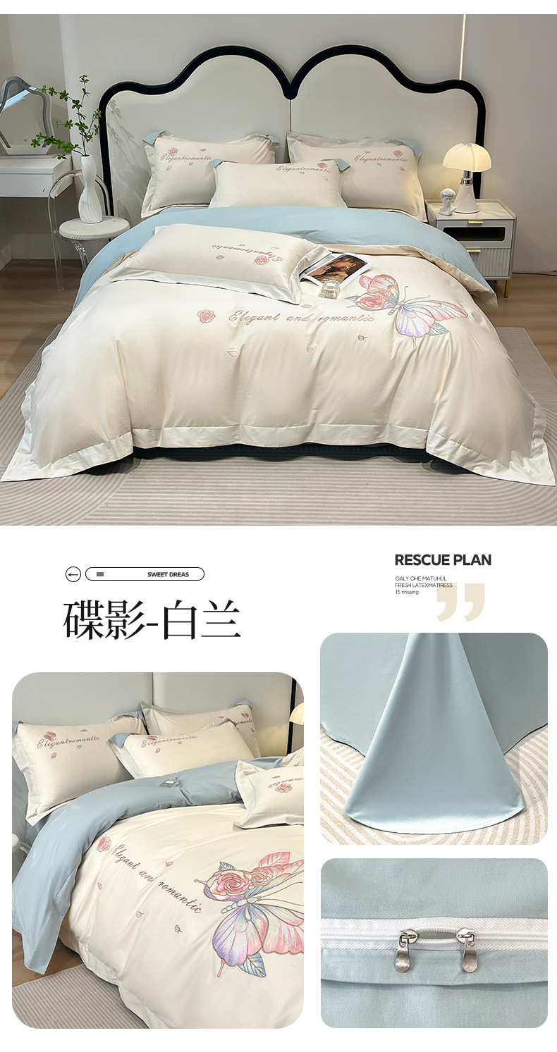 하이 엔드 코튼 긴 스테이플 코튼 자수 4 피스 세트 두꺼운 피부 친화적 인 통기성 퓨어 코튼 자수 침대 시트 퀼트 커버 침구스토어 가기